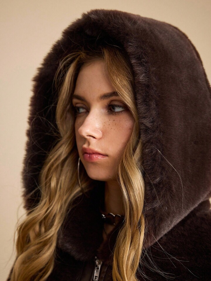 EDITION Hippie Western Style Soft Hooded Short Faux Fur Jacket For Women