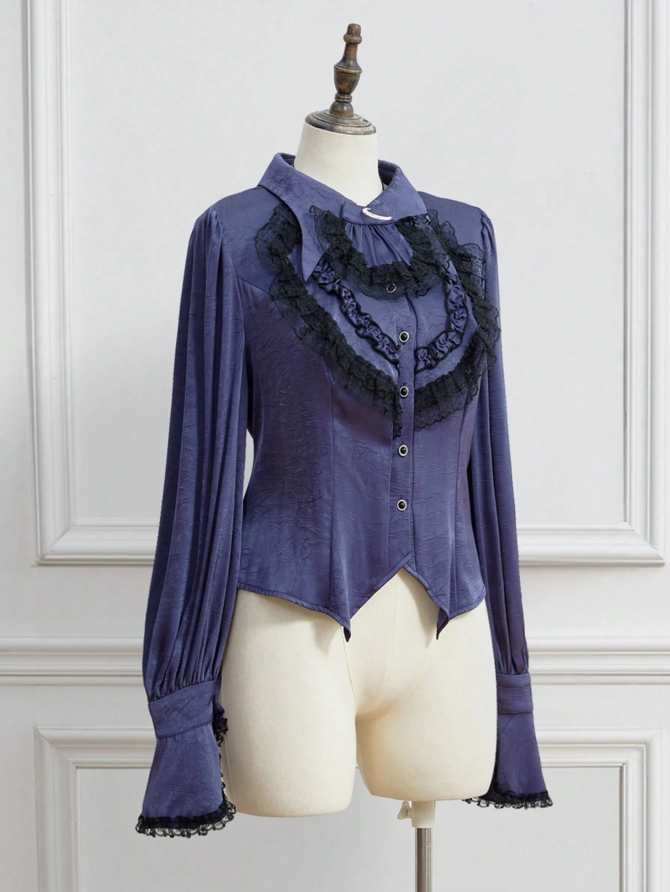 EDITION Plus Size Medieval Vintage Dark Gothic Turndown Collar Long Sleeve Shirt