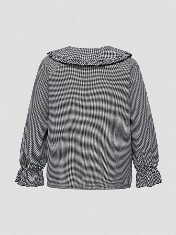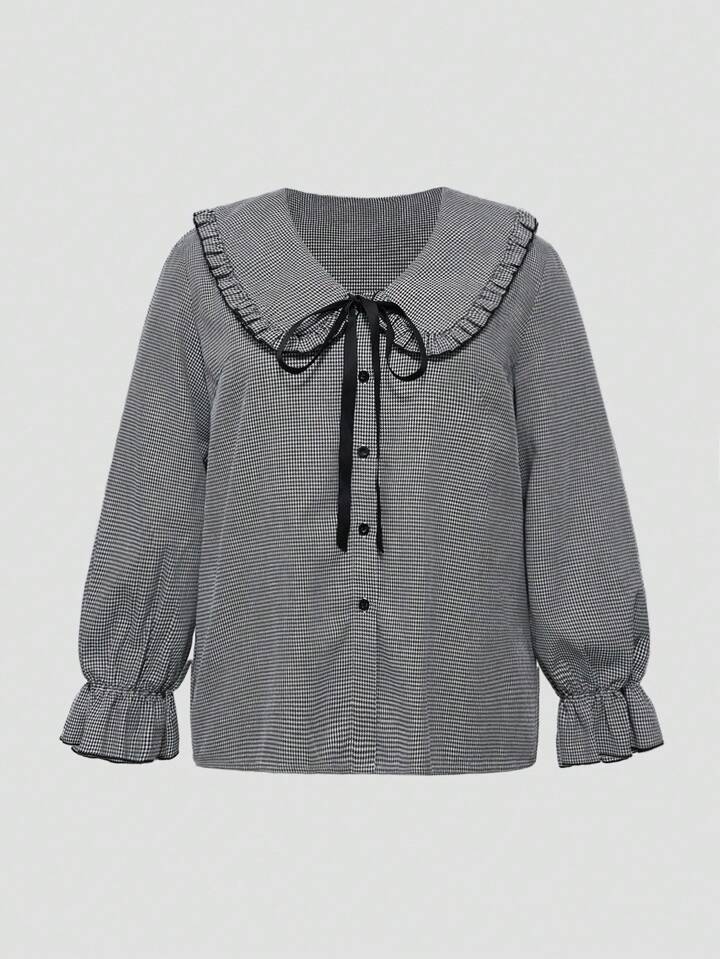 EDITION Plus Size Women Casual Cute Floral Peter Pan Collar Blouse