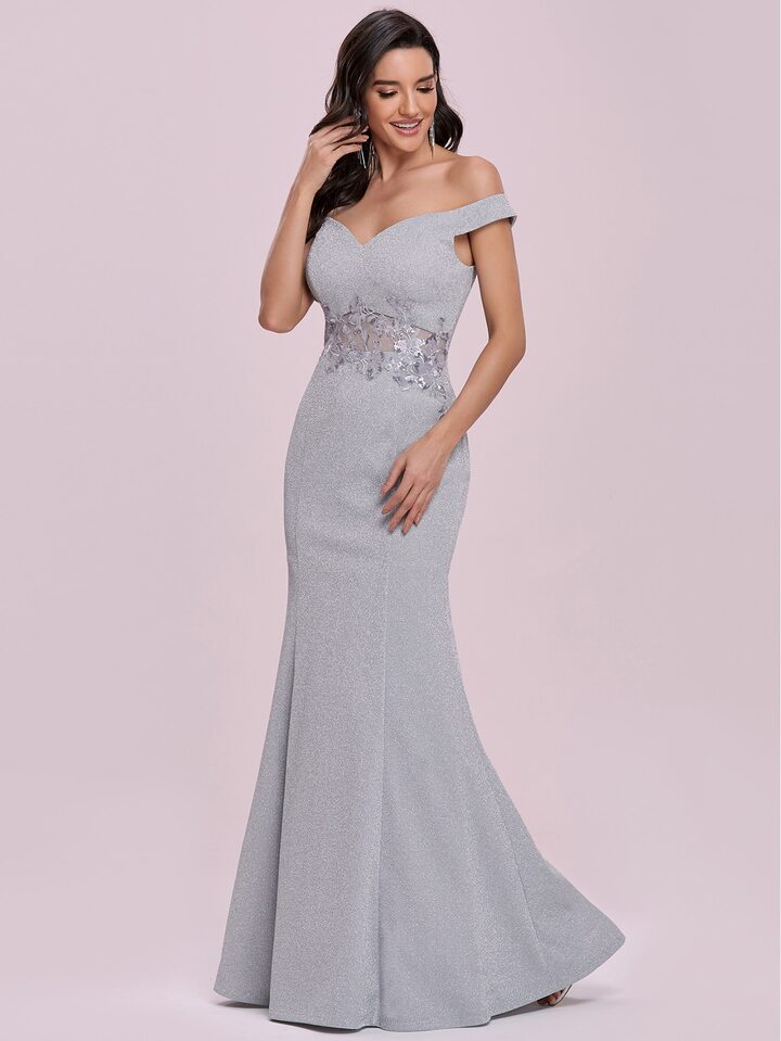 EVERPRETTY Contrast Sequin Mesh Insert Glitter Prom Dress
