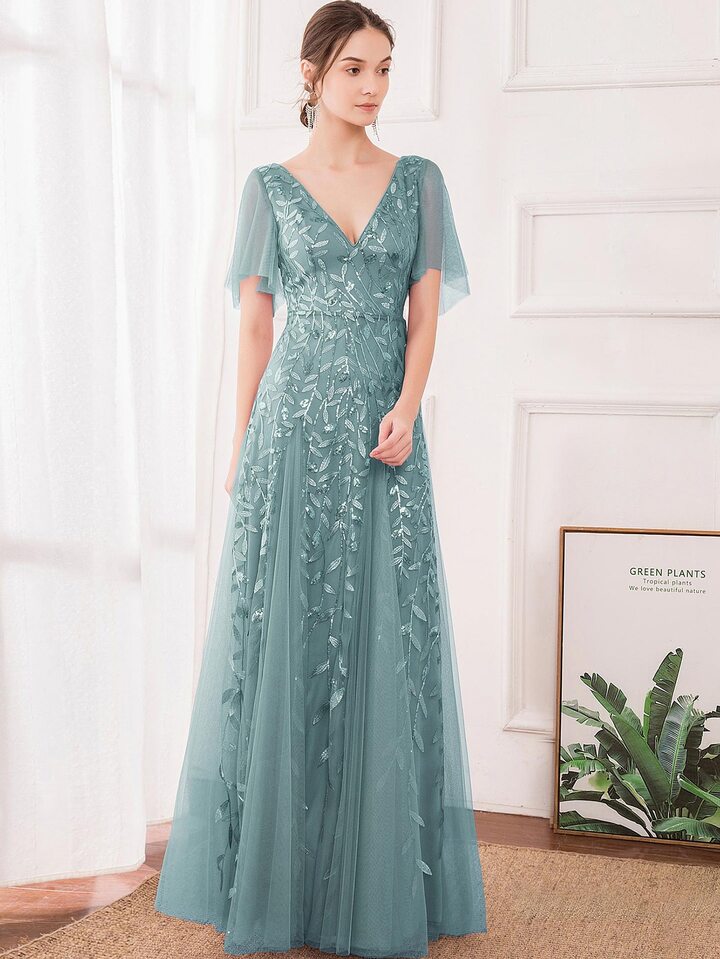 EVERPRETTY Contrast Sequin Plants Detail Mesh Prom Dress