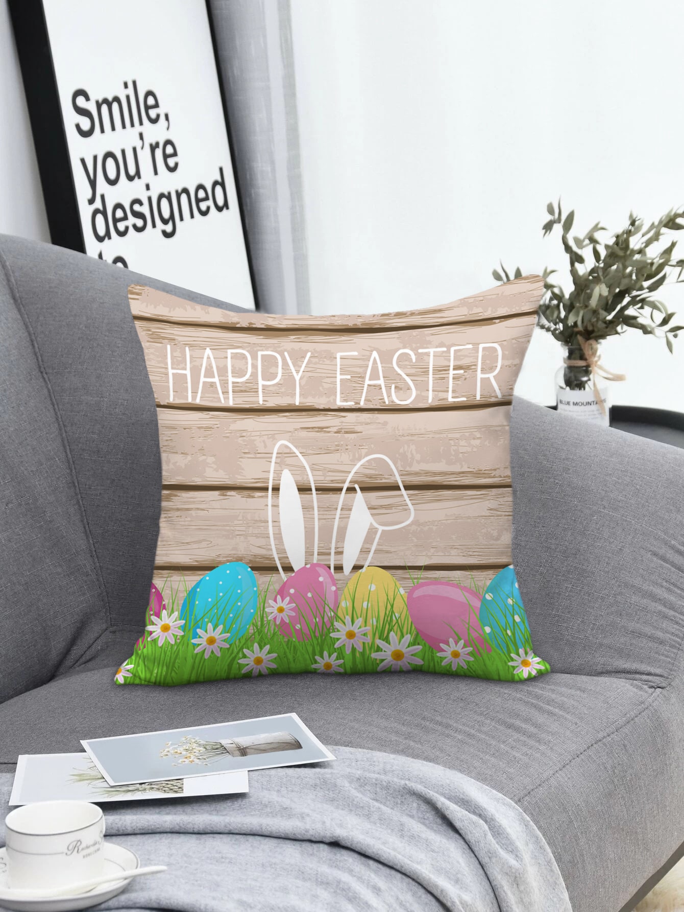 Easter Rabbit Ear & Egg Print Cushion Cover Without Filler