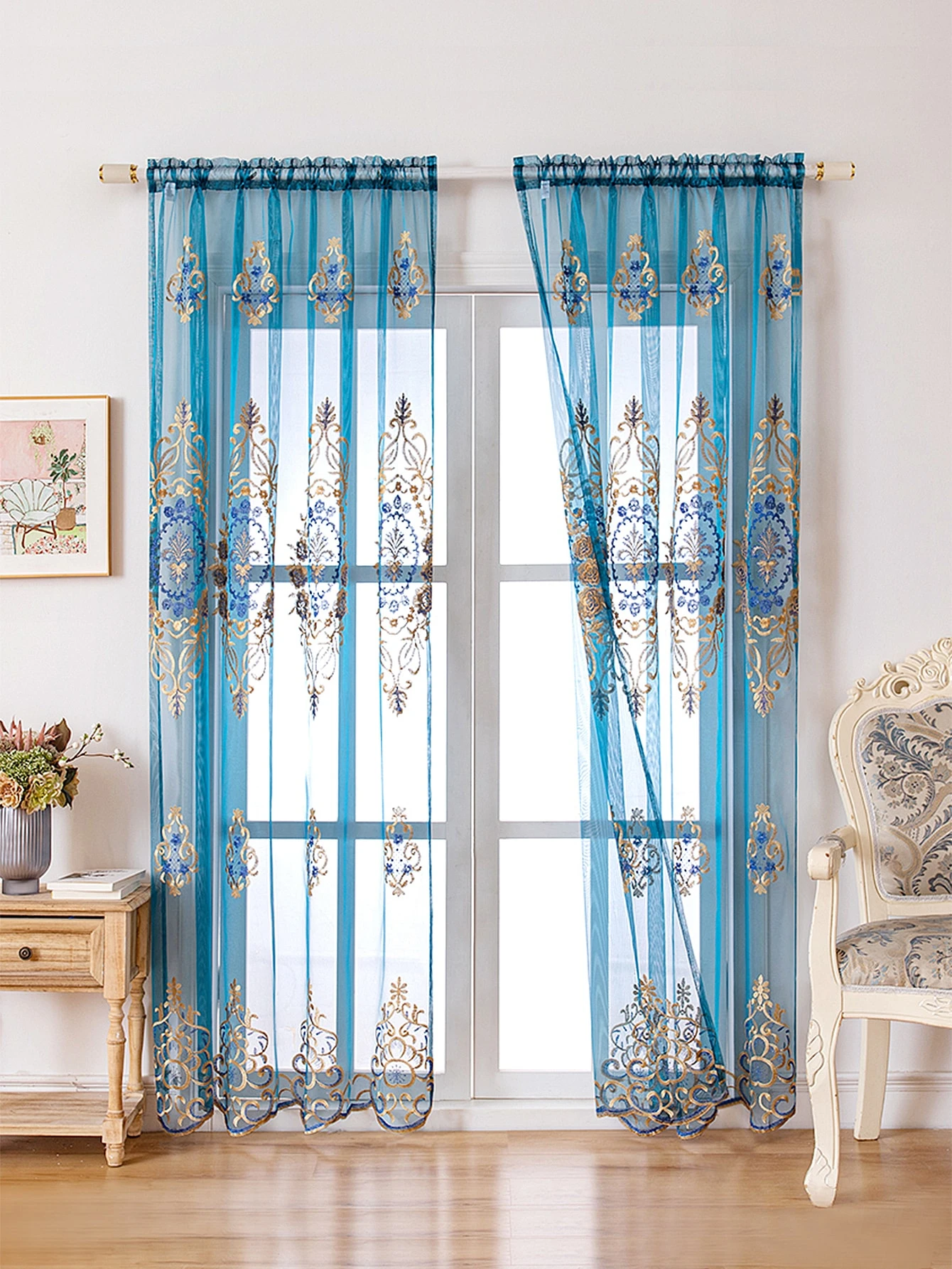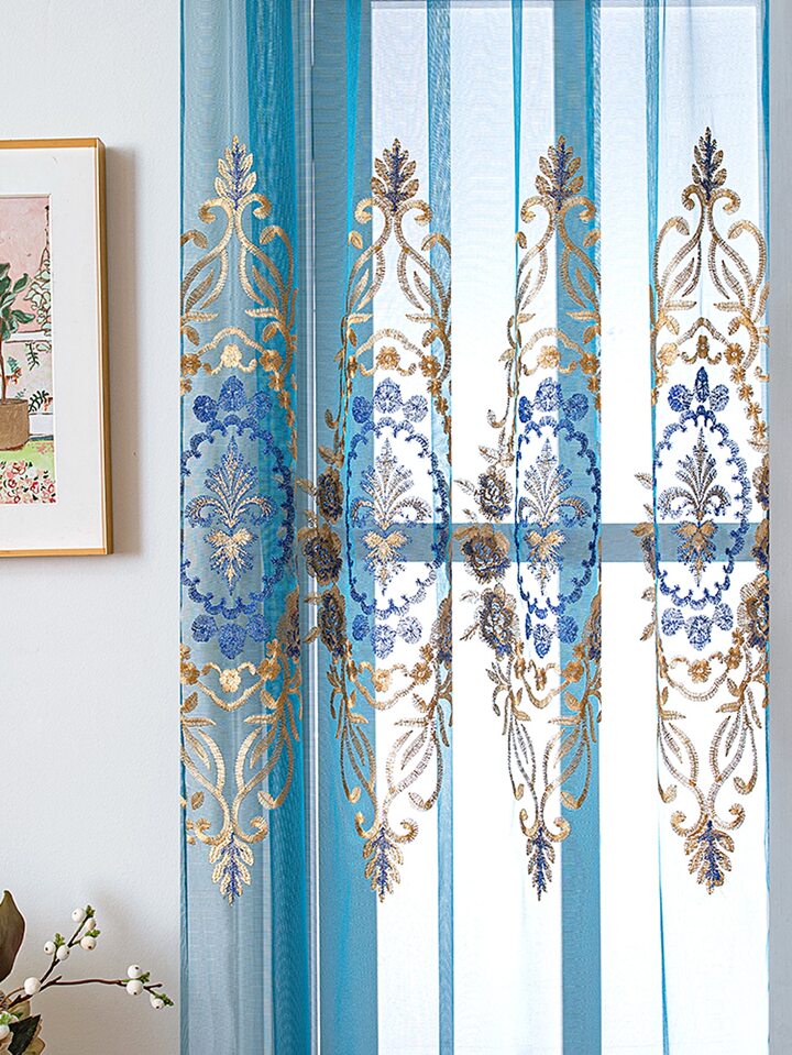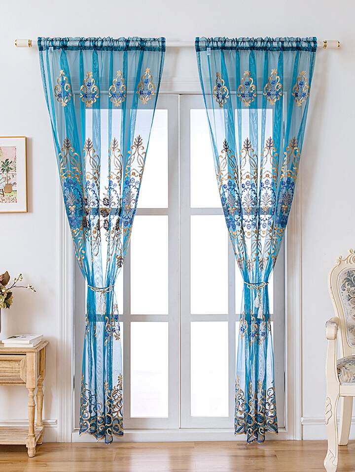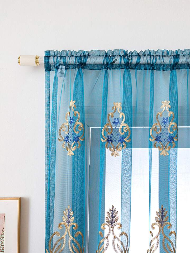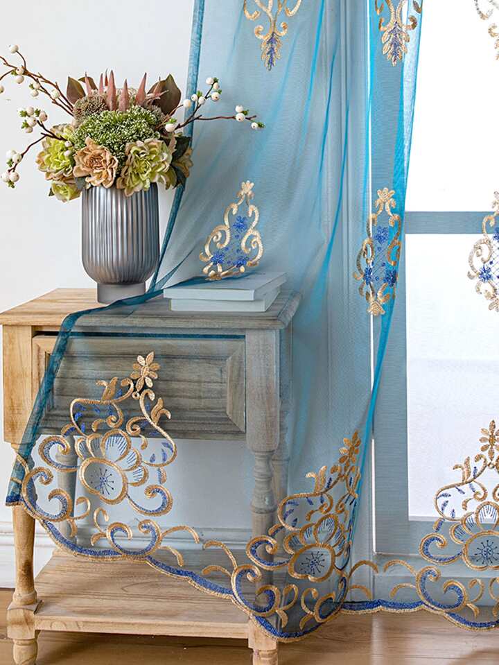 Embroidery Detail Single Panel Sheer Curtain