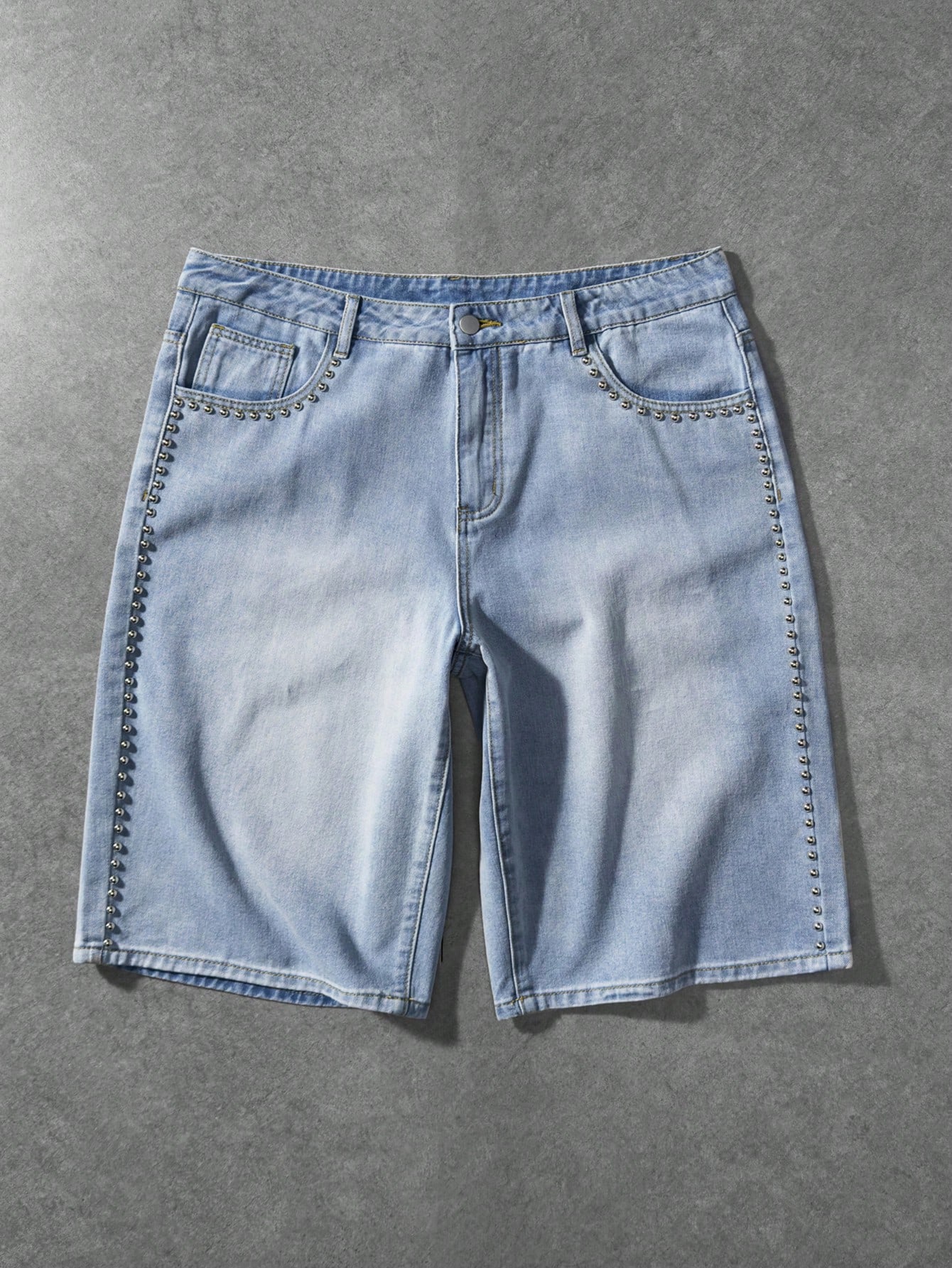 Essentials Men's Casual Everyday Commute Fashion Street Rivet Decor Washed Denim Shorts, Summer