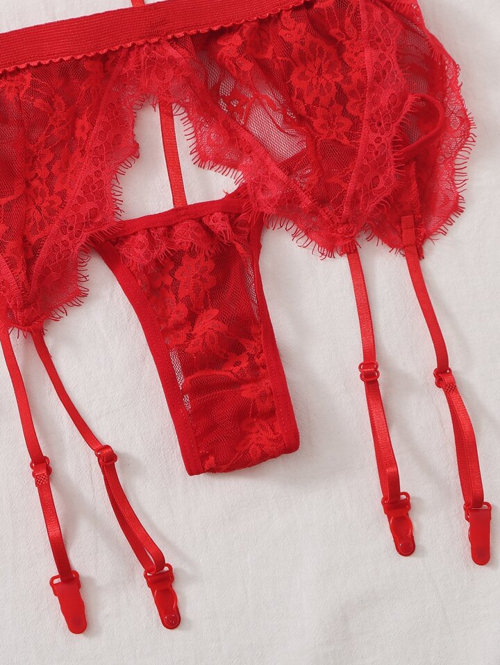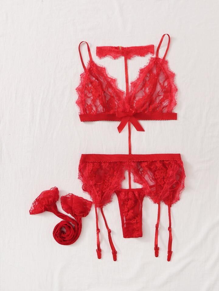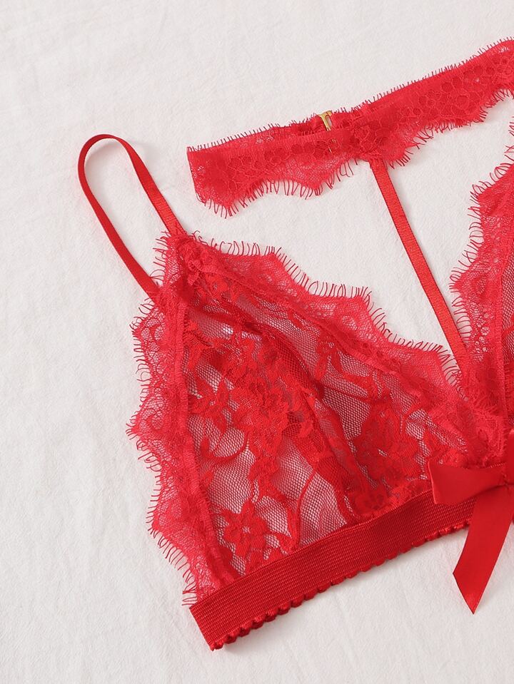 Eyelash Lace Garter Teddy Bodysuit With Choker & Stockings