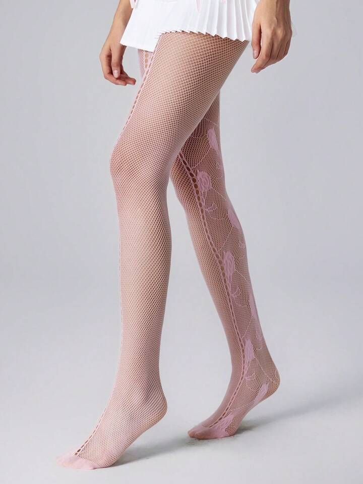 Fairycore 1 Pair Fashion Sexy Jacquard Hollow Out Fishnet Pantyhose