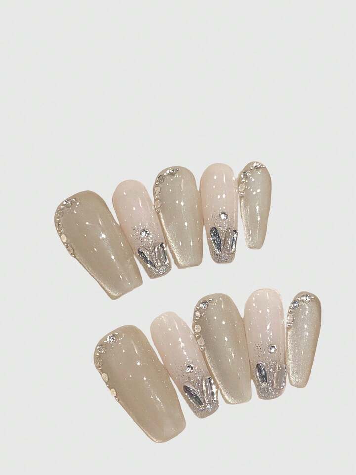 Fairycore 10pcs Half Moon Cat Eye Removable Full Coverage Nail Art Set