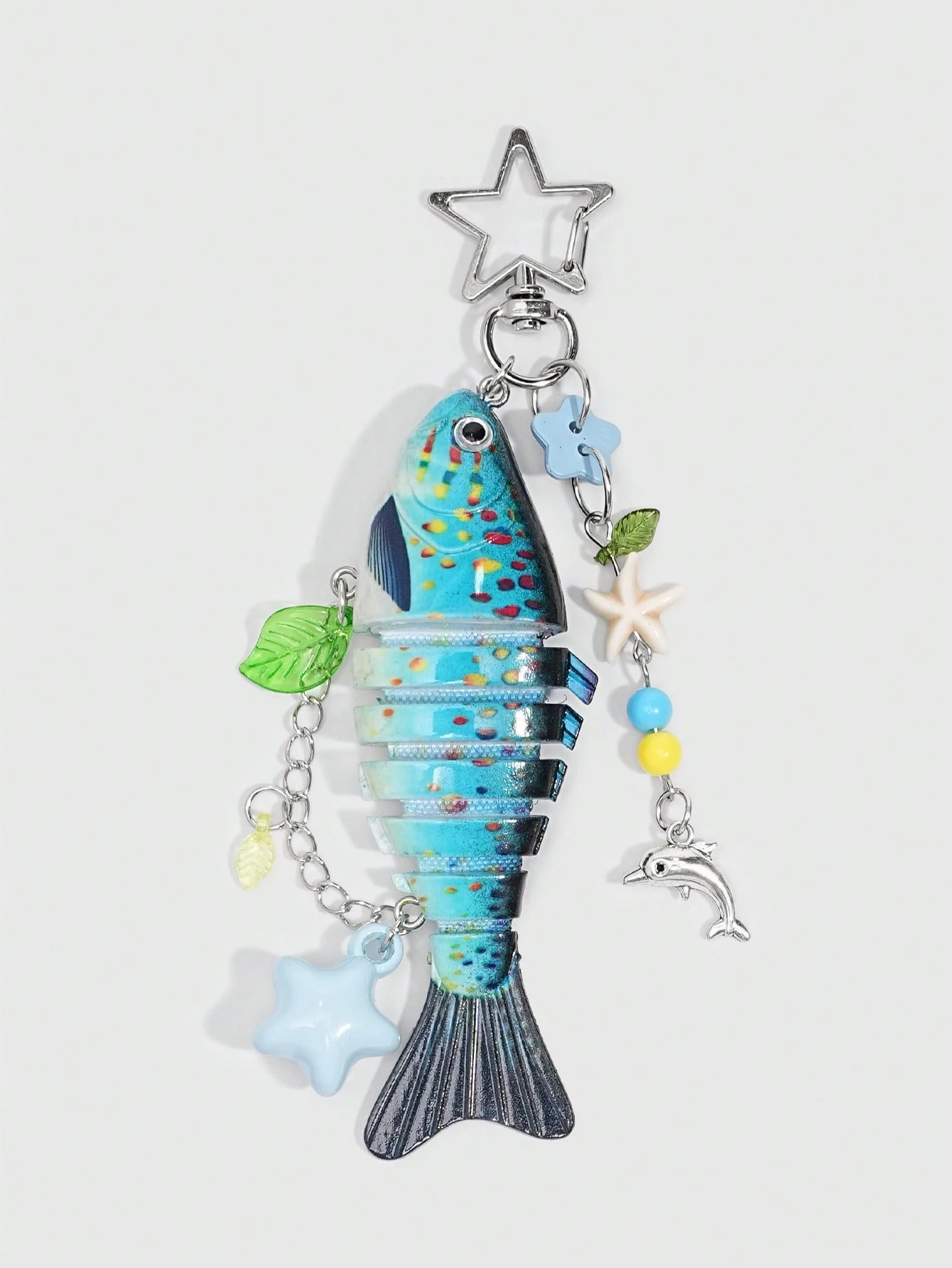 Fairycore 1Pc Handmade Dopamine Color Tropical Fish Keychain, Spring And Summer Imitation Bait, Multi-Segment Fish Hook Pendant, Holiday/Ocean Style