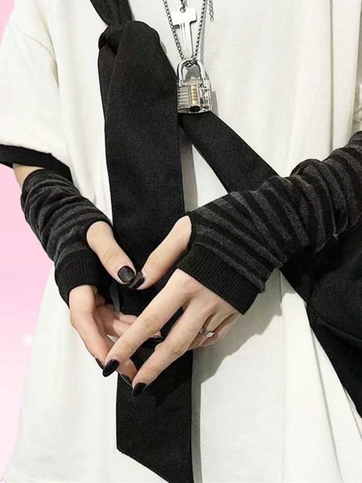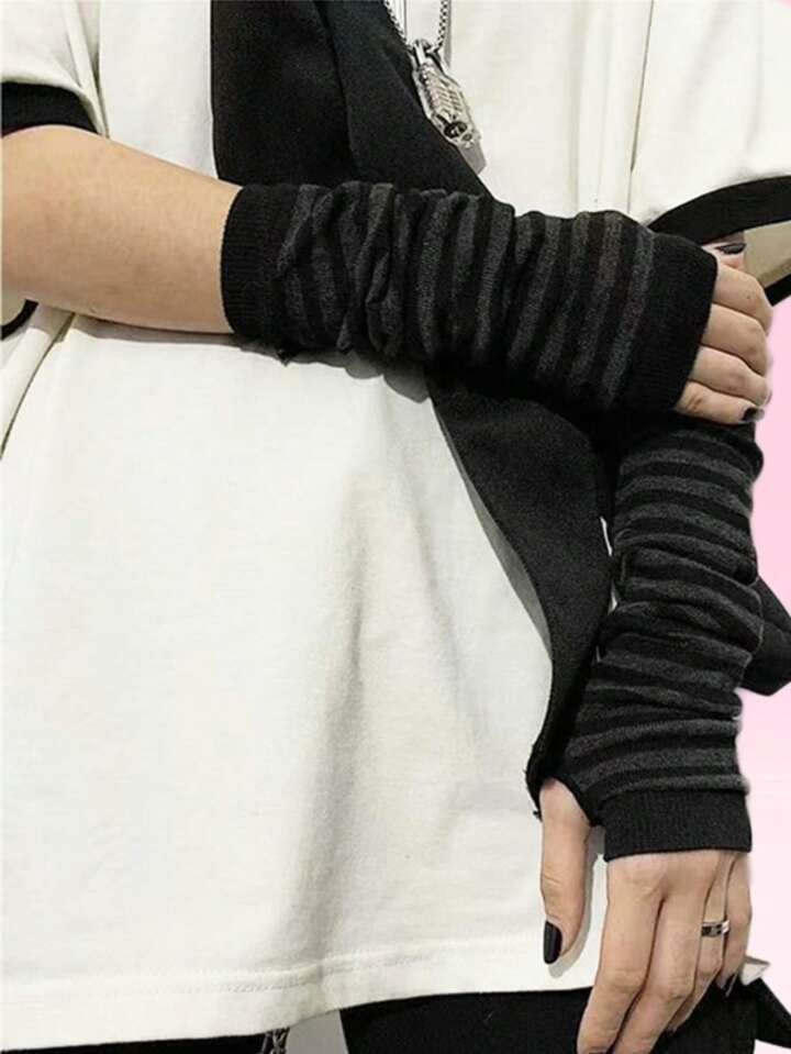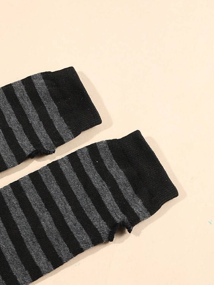 Fairycore 1pair Black Striped Fashionable Arm Sleeves For Women