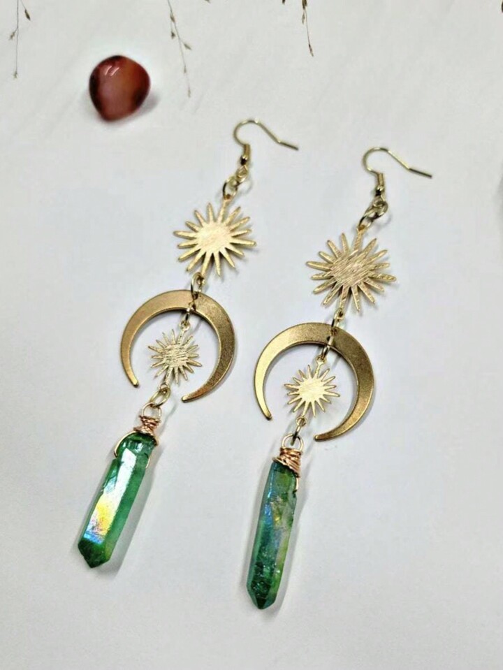 Fairycore 1pair Crystal Quartz Sun & Moon Earrings