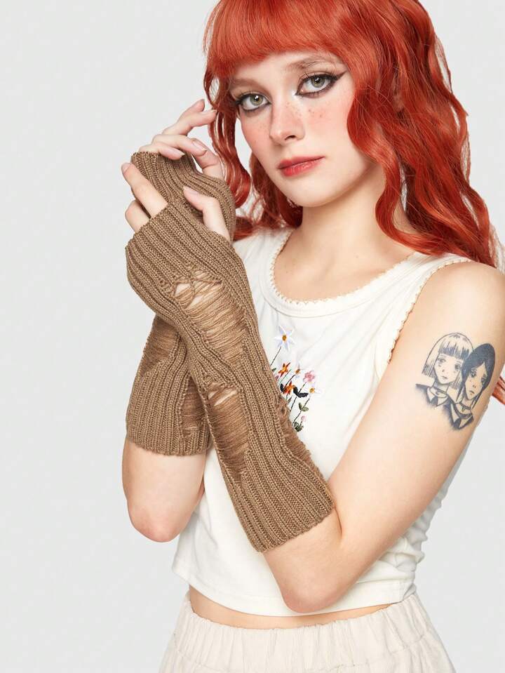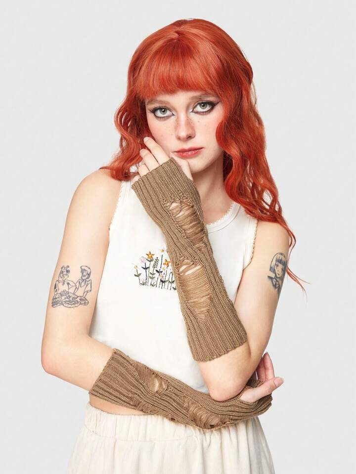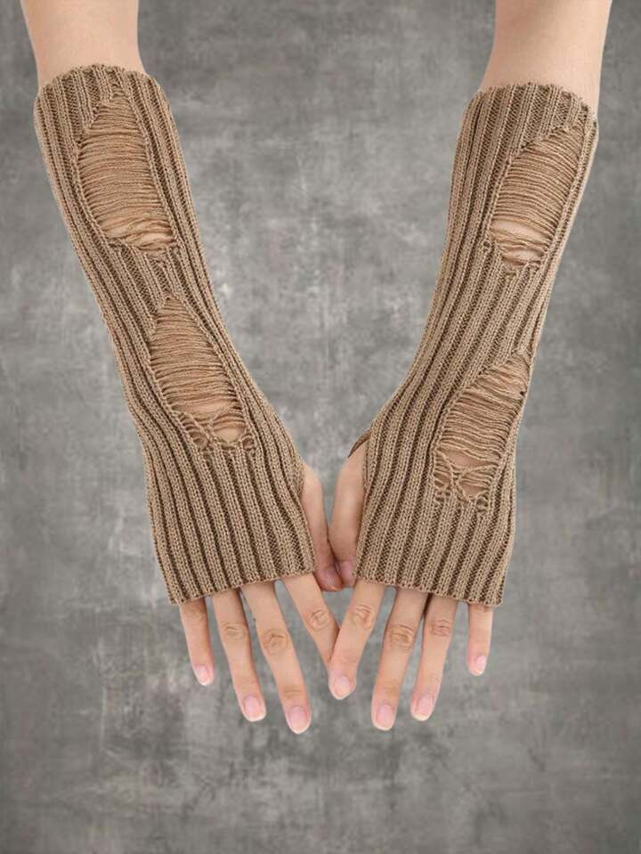 Fairycore 1pair Ladies' Distressed Holes Arm Sleeves