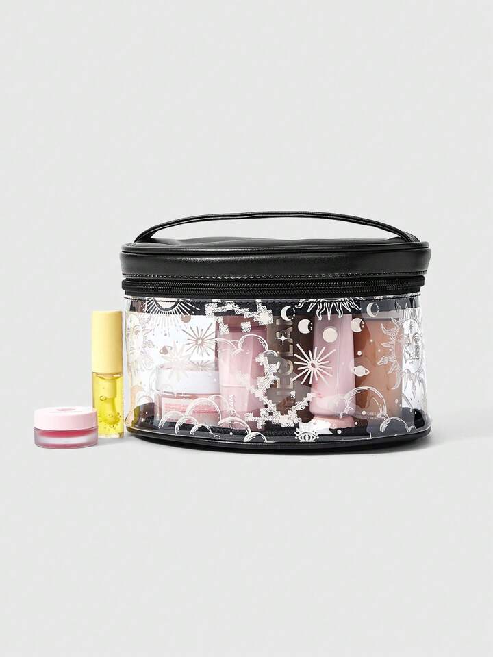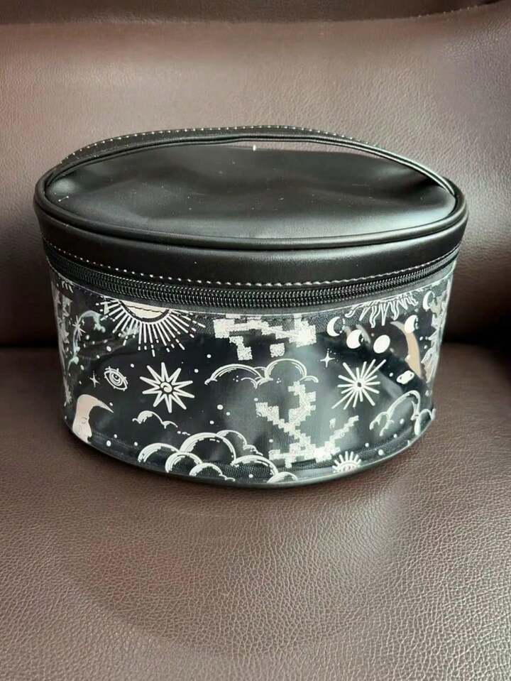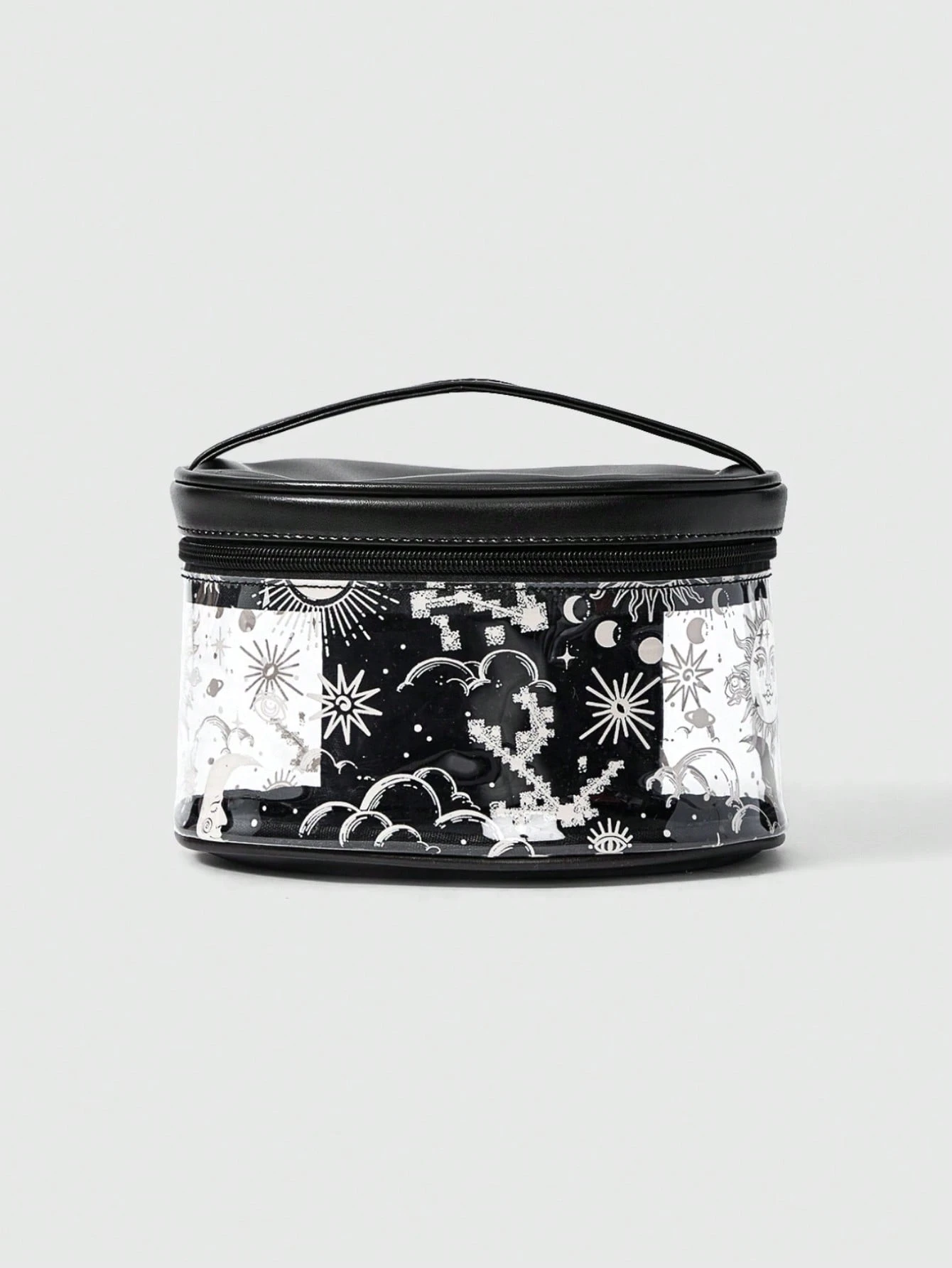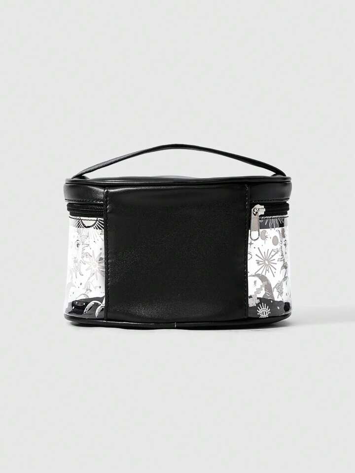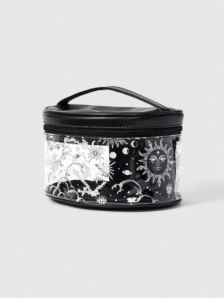 Fairycore 1pc Black Gothic Style Moon & Sun Print Large Capacity Portable Makeup Bag