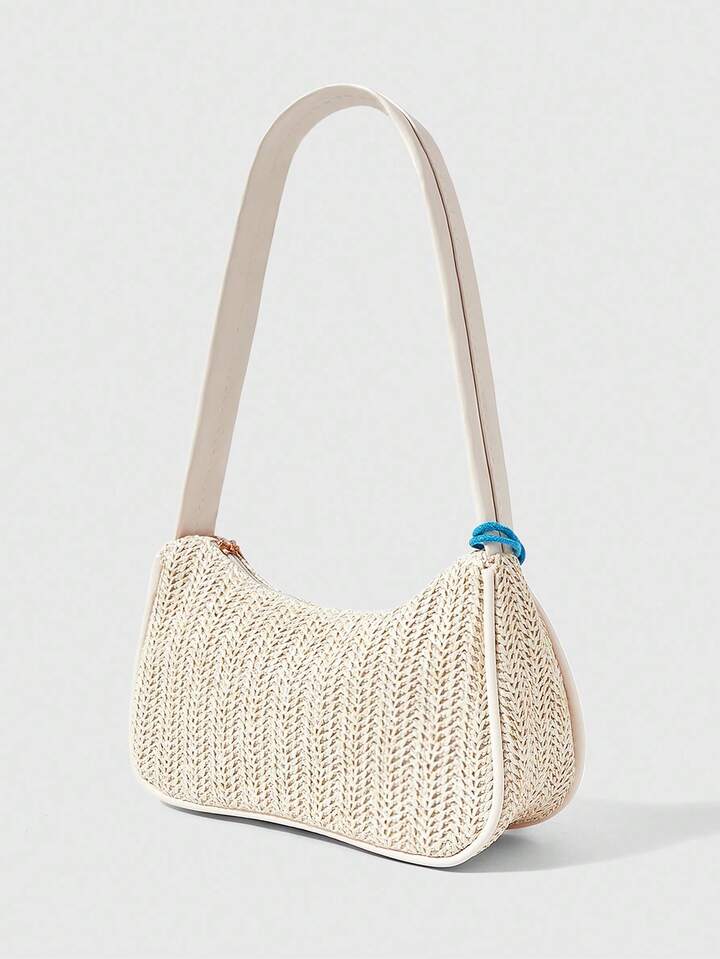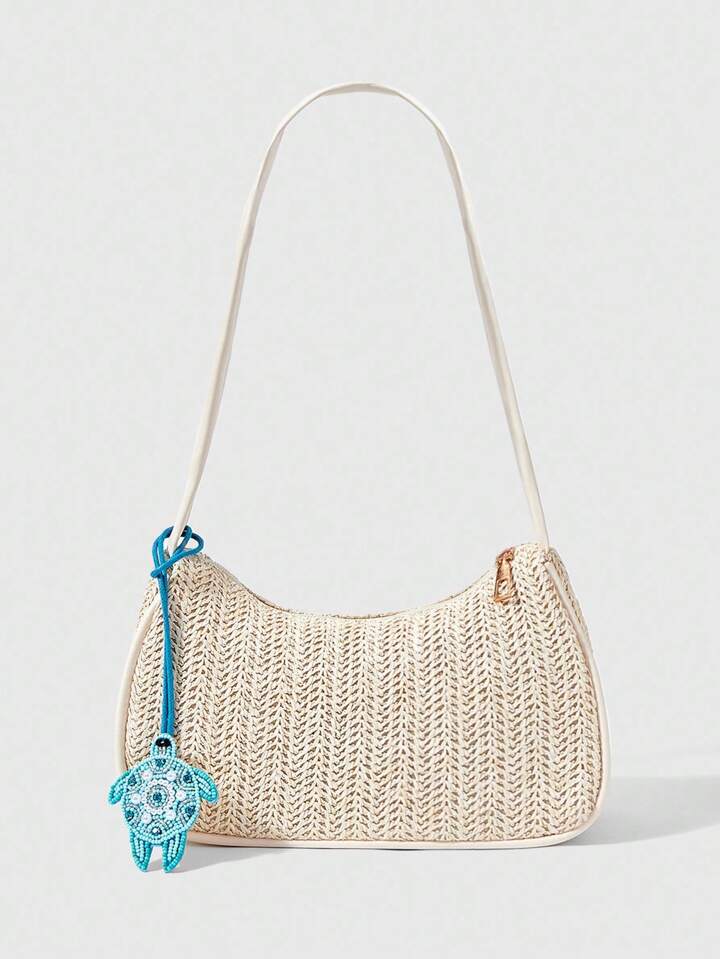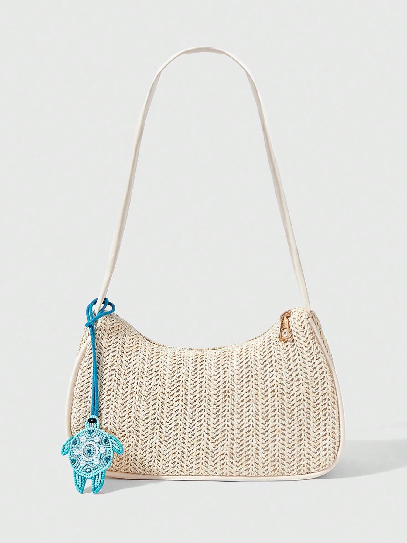 Fairycore 1pc Bohemian Style Beach Bag, Hollow Out Net Tote Bag For Women, Suitable For Vacation, Comes With Bag Charm & Tropical Flower Decor