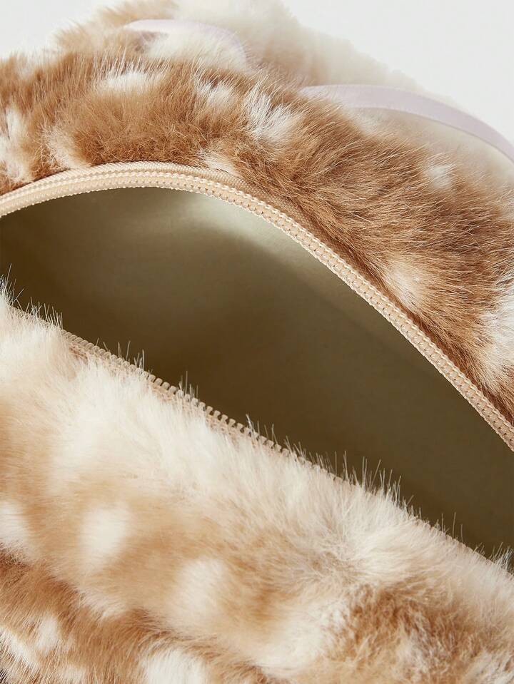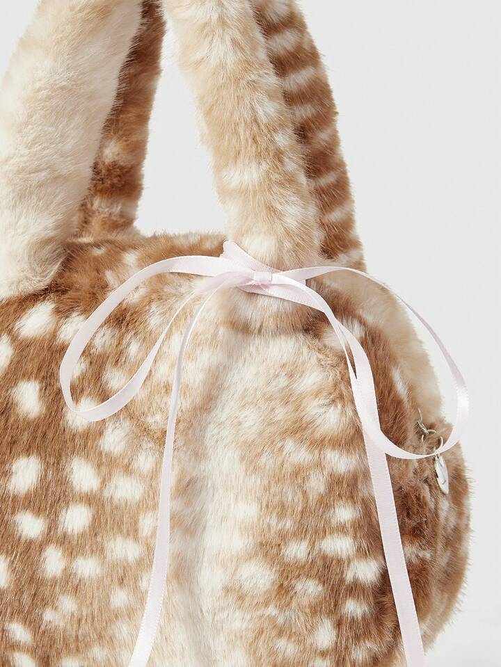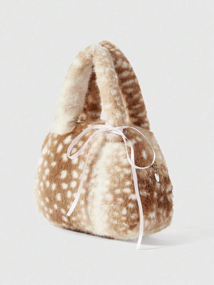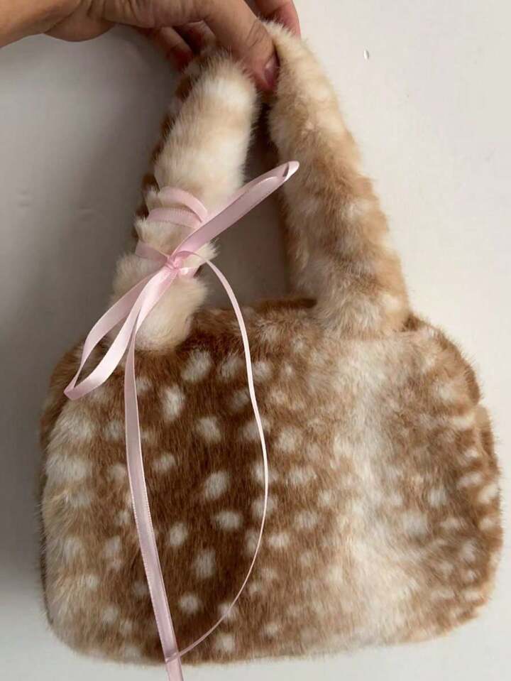 Fairycore 1pc Brown Small Fashionable Portable Plush Lace Bow Cute Ladies Handbag