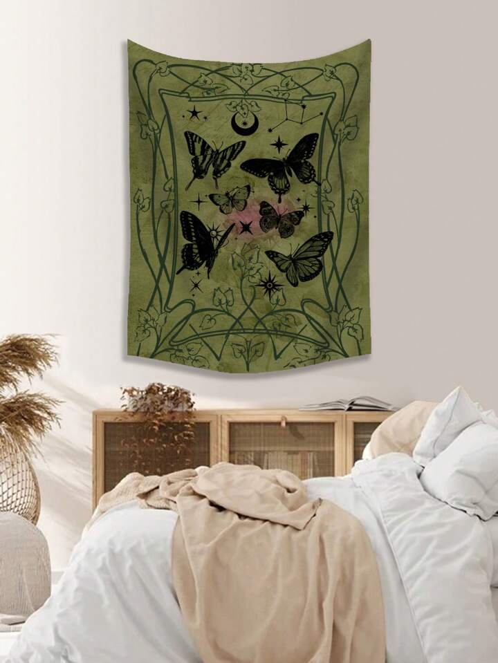 Fairycore 1pc Butterfly & Floral Print Tapestry,Boho Washable Tapestry Poster Wall Hanging For Bedroom Aesthetic