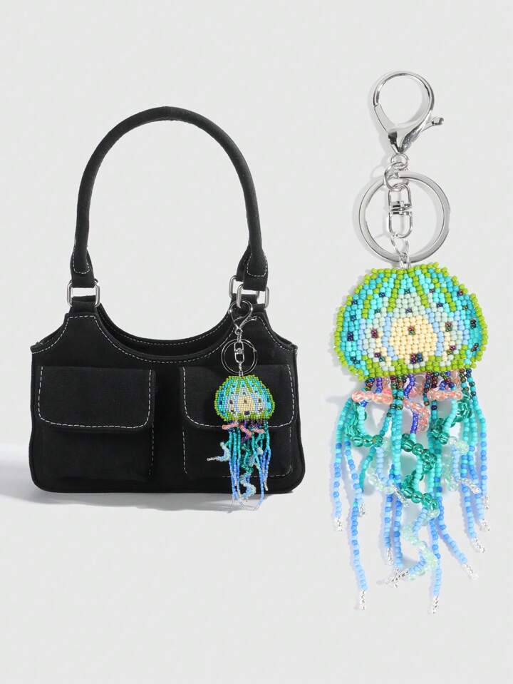 Fairycore 1pc Colorful Bohemian Style Handmade Beaded Tassel Jellyfish Keychain, Decorative Charm For Vacation Bags