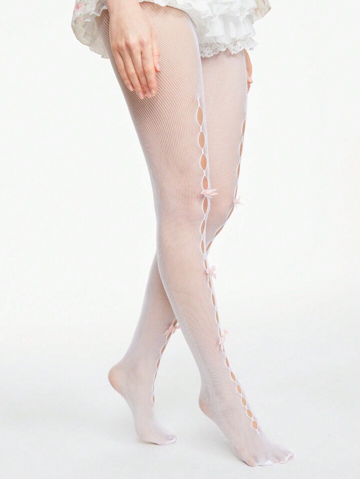 Fairycore 1pc Cute Pink Bowknot Cutout Tights