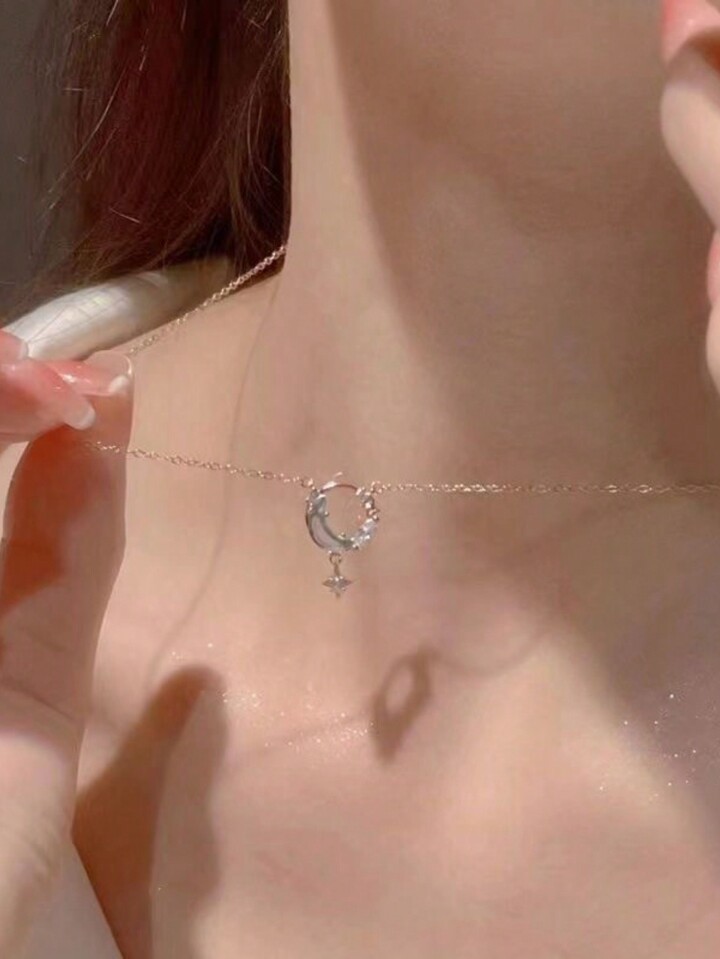 Fairycore 1pc Fashion Iron Alloy Rhinestone Decor Moon & Star Charm Necklace For Women For Daily Decoration