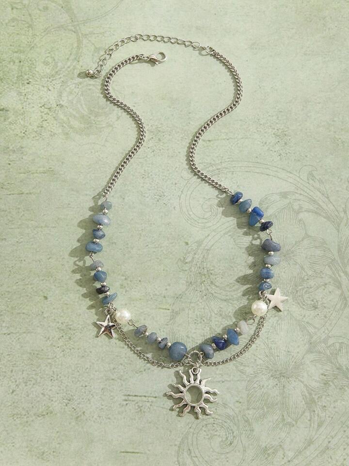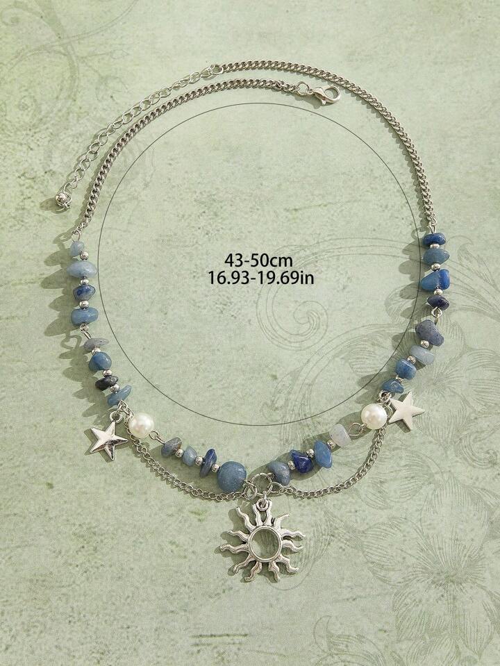 Fairycore 1pc Fashion Sun & Star Decor Beaded Necklace For Women For Daily Decoration