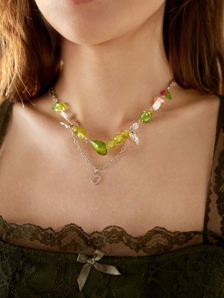 Fairycore 1pc Fashion Zinc Alloy Heart & Beaded Pendant Necklace For Women For Daily Decoration