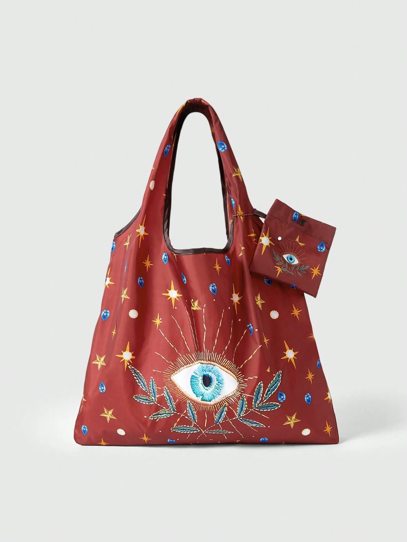 Fairycore 1pc Fashionable Eye-Shaped Celestial Motif Storage Pouch, Large Capacity Foldable Tote Bag With Coin Purse