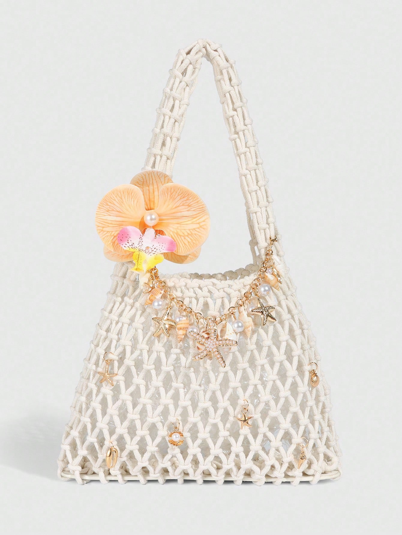 Fairycore 1pc Fashionable Personalized Spring/Summer Beach Vacation Style Orange Ocean Woven Beach Bag, Large Size Women Handbag