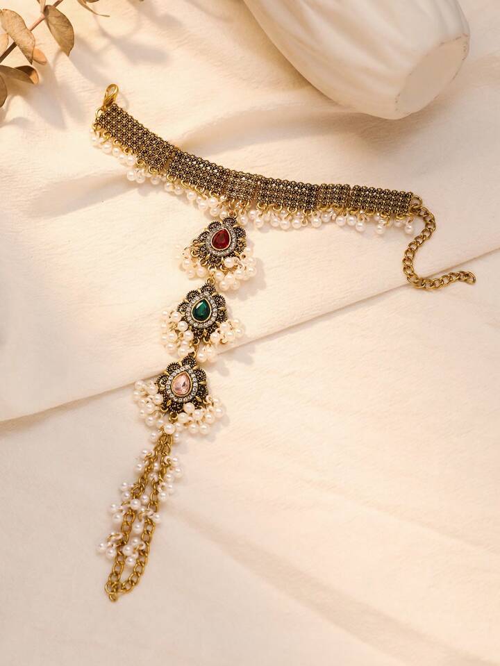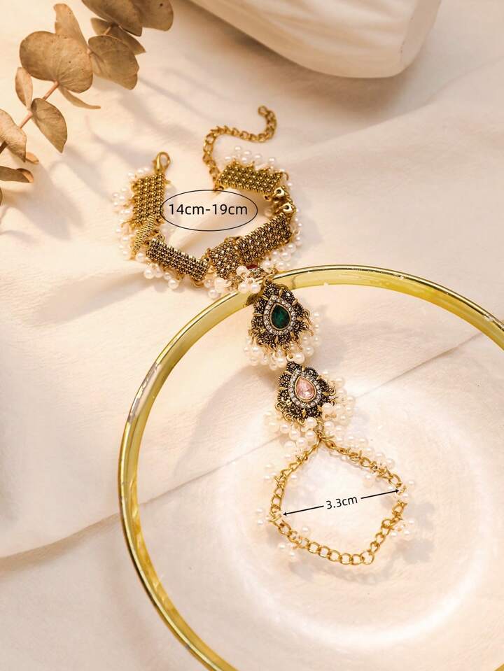 Fairycore 1pc Glamorous Zinc Alloy Rhinestone & Faux Pearl Decor Mitten Bracelet For Women For Dating Gift