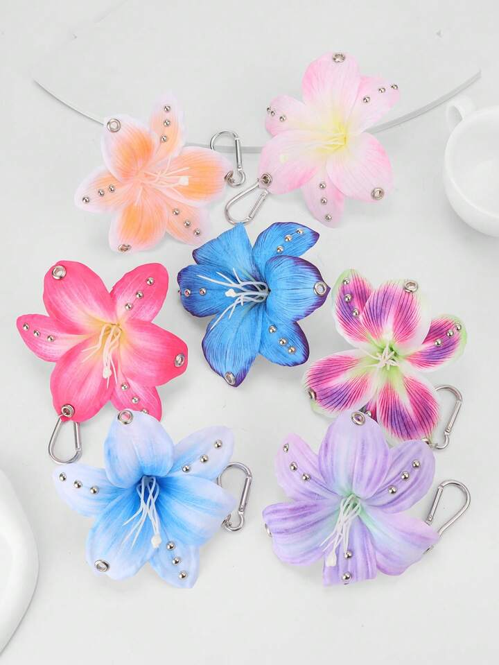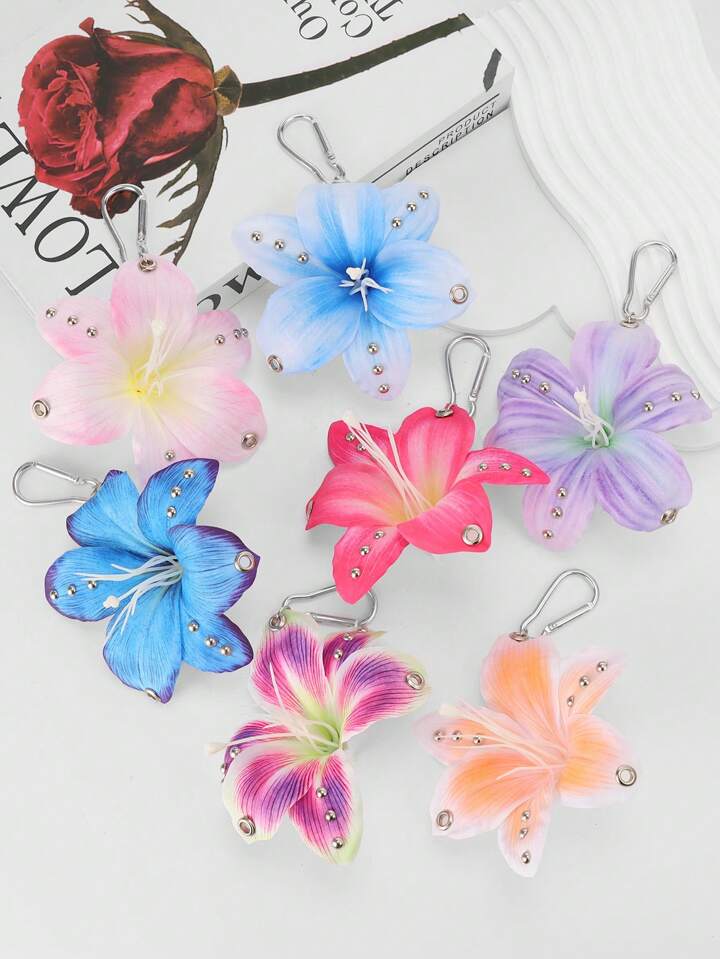 Fairycore 1pc Lilac Gradient Lily Flower Decor Keychain, Chic Beach Resort Style, Wedding Birthday Holiday Gift Bag Charm