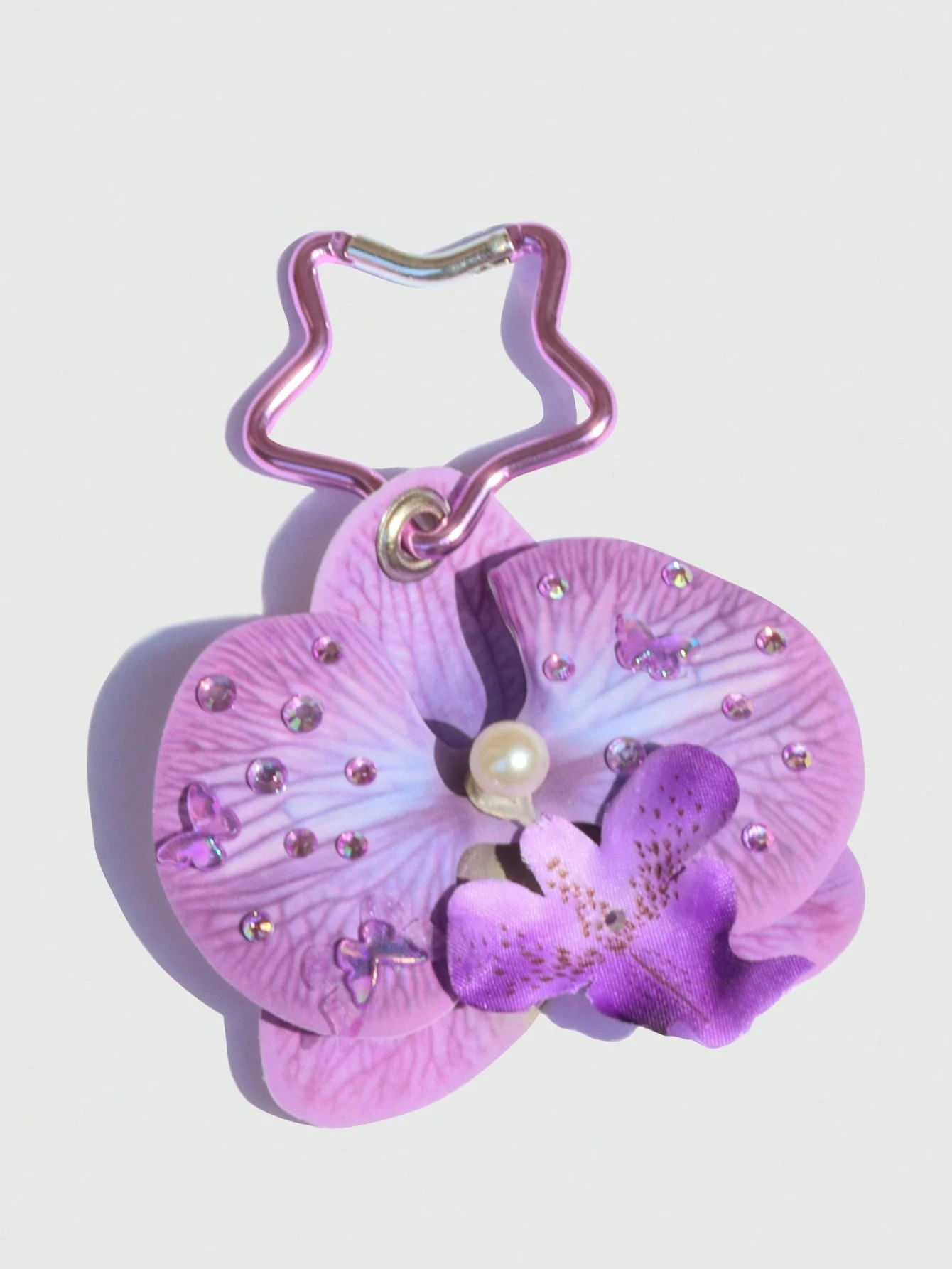 Fairycore 1pc Rhinestone Orchid Flower Keychain, Purple Artificial Flower Bag Pendant Decor, Suitable For Beach, Wedding, Back To School, For Teenagers (Rhinestones Need To Be Applied Yourself)