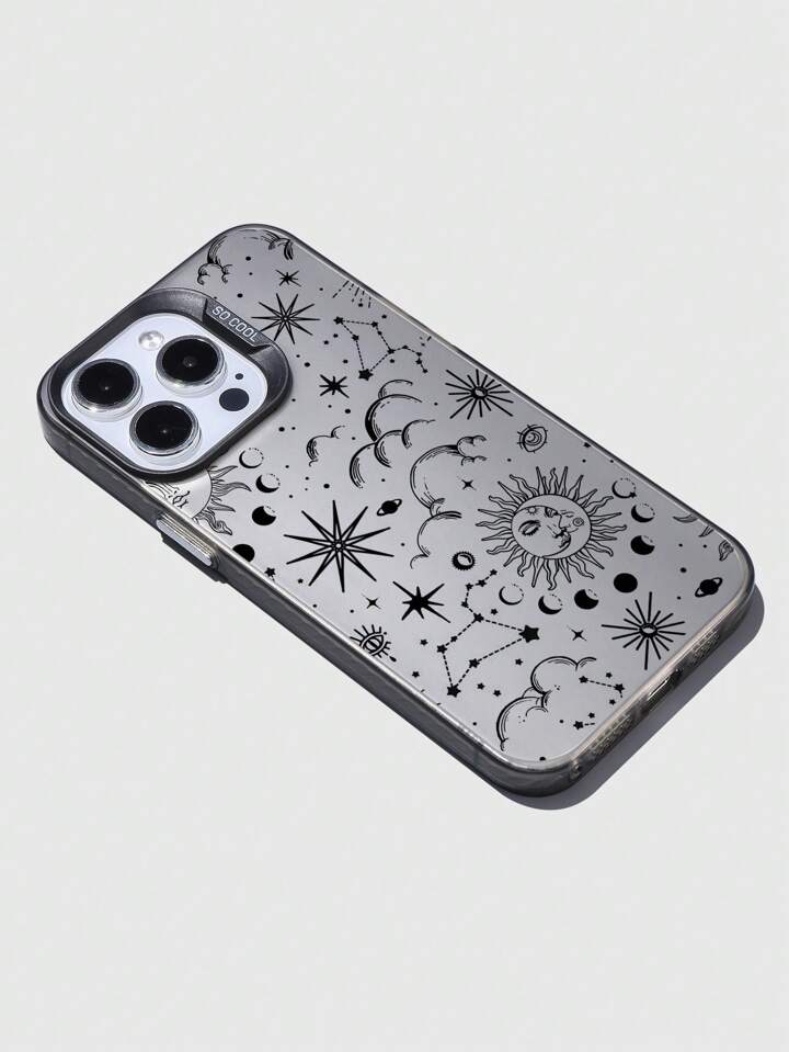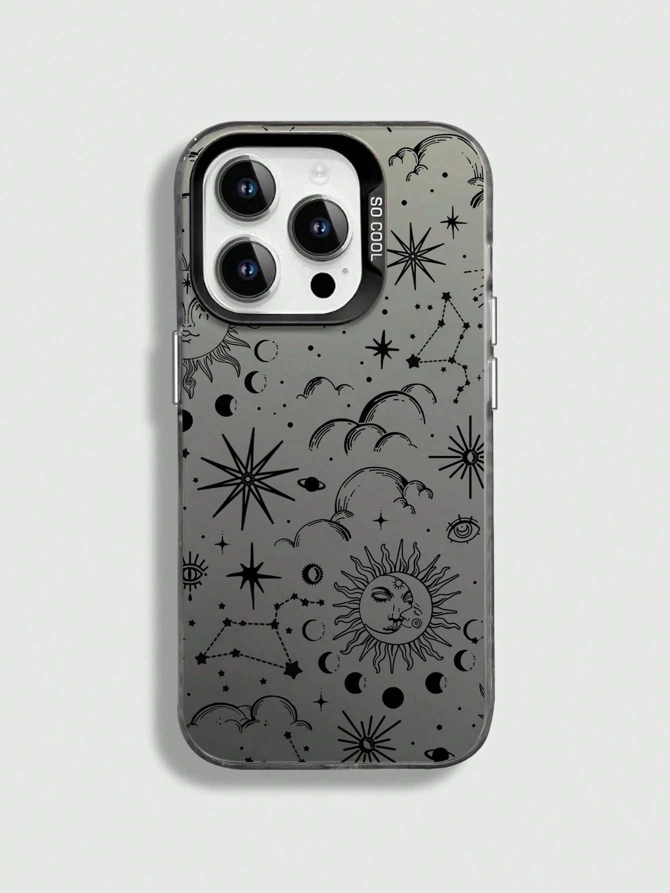 Fairycore 1pc The Moon And Stars Pattern Printed TPU Frosted Anti-Fall Phone Case, Compatible With IPhone