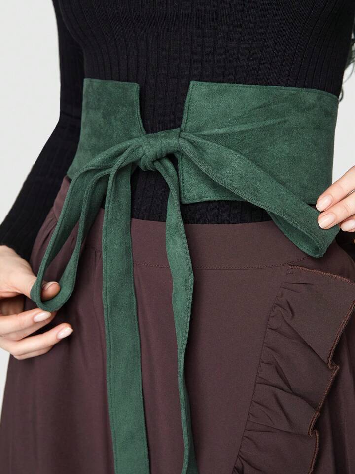 Fairycore 1pc Women Solid Tie Front Corset Belt