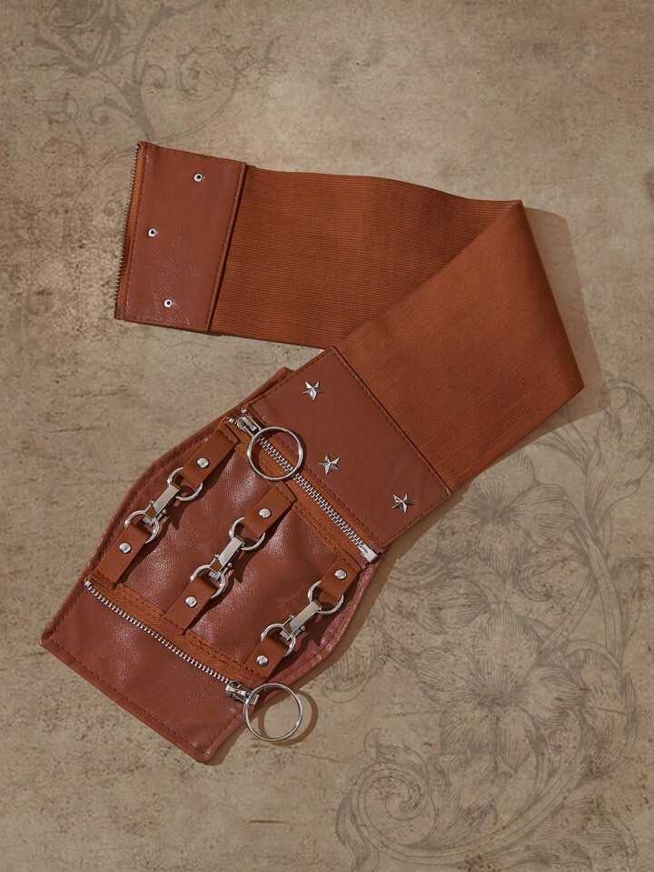 Fairycore 1pc Women Star Decor Zipper & Buckle Decor Punk Corset Belt