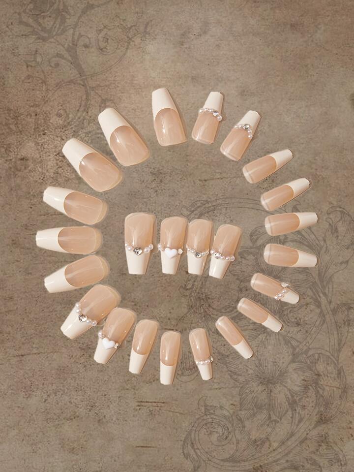 Fairycore 24pcs Coffin 3D Heart Decor Fake Nail & 1sheet Tape