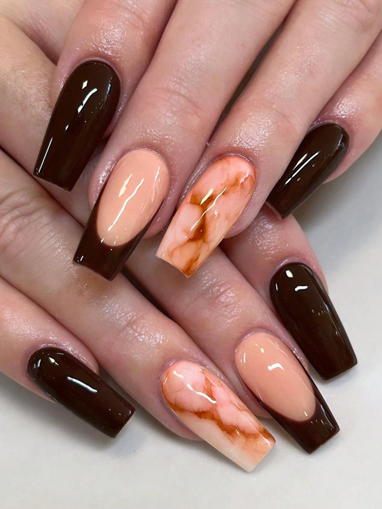 Fairycore 24pcs/set Deep Brown French Style Amber Gradient Design Detachable Nail Tips