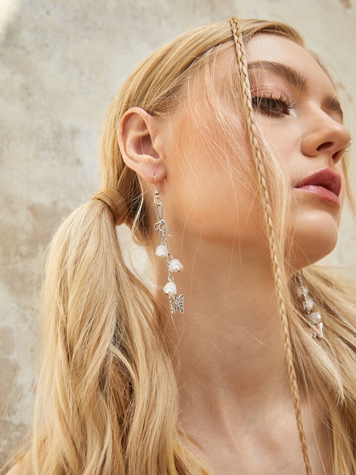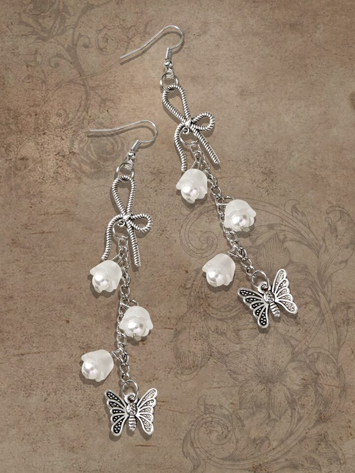 Fairycore 2pcs Butterfly & Flower Decor Earrings