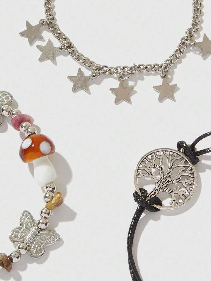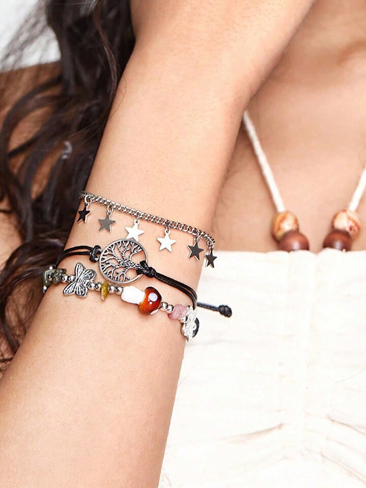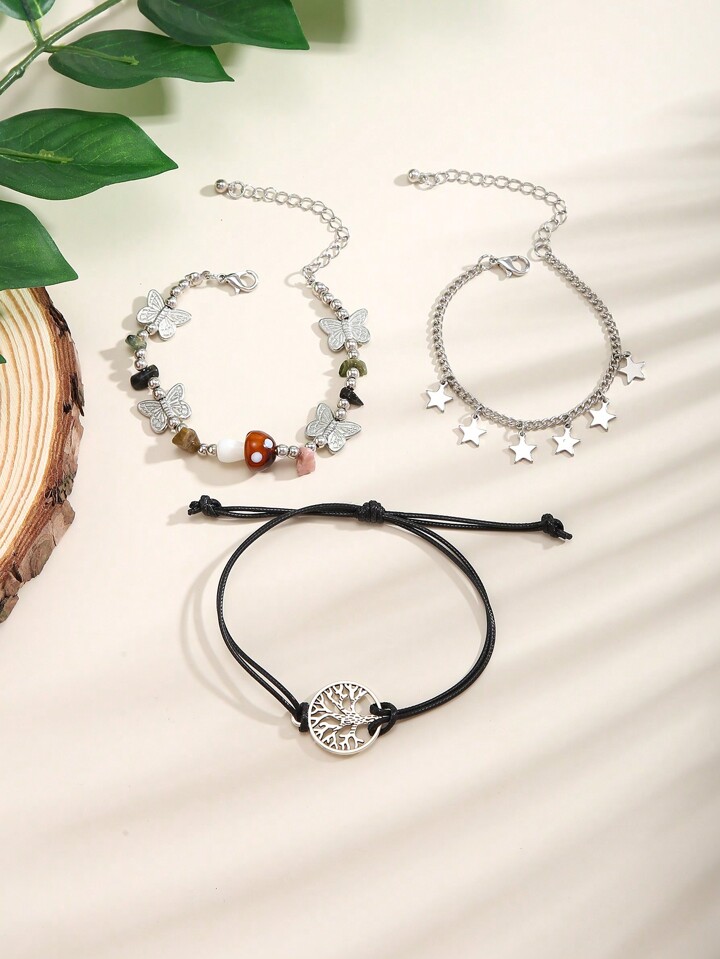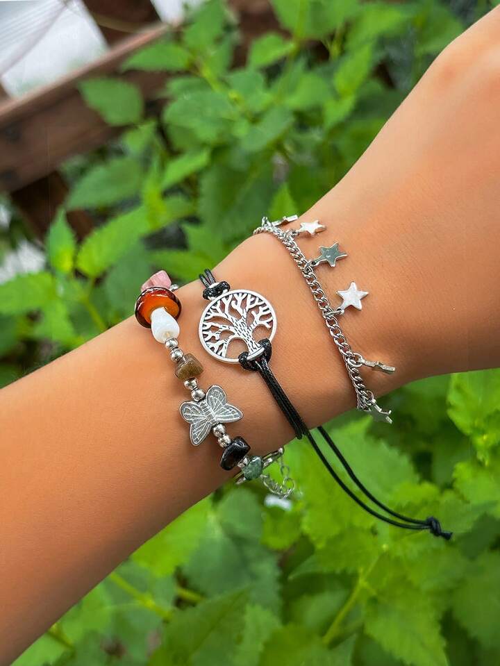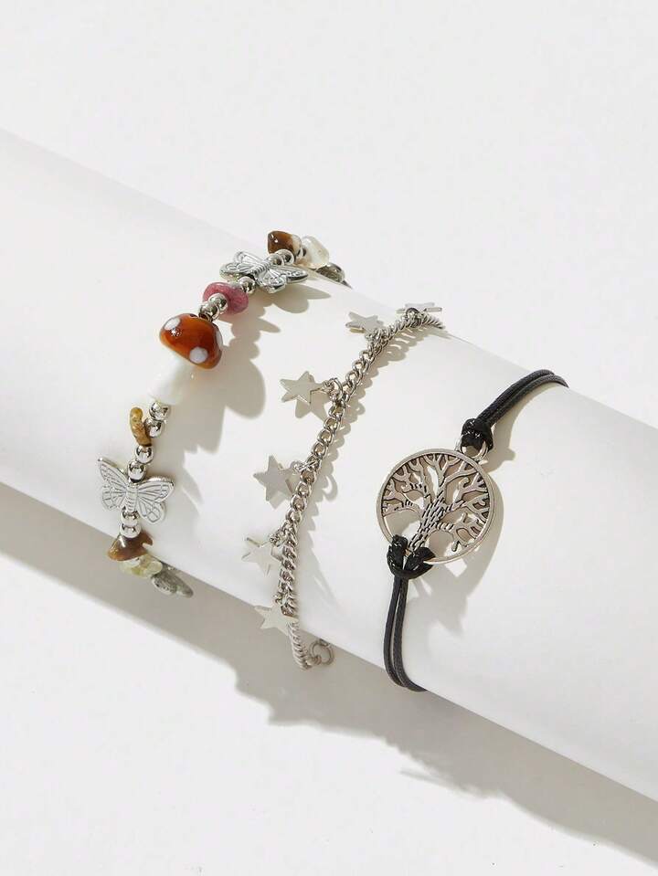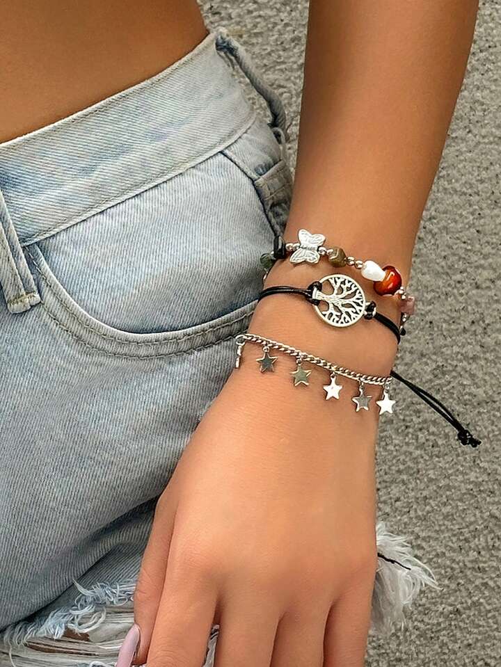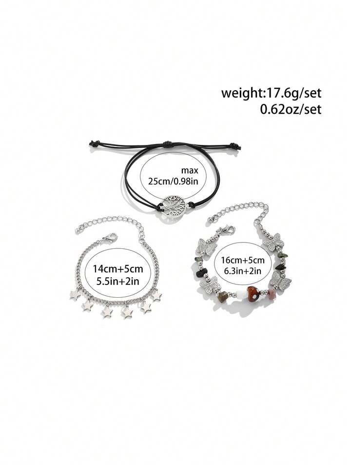 Fairycore 3pcs Boho Zinc Alloy Butterfly & Star Charm Bracelet For Women For Daily Decoration