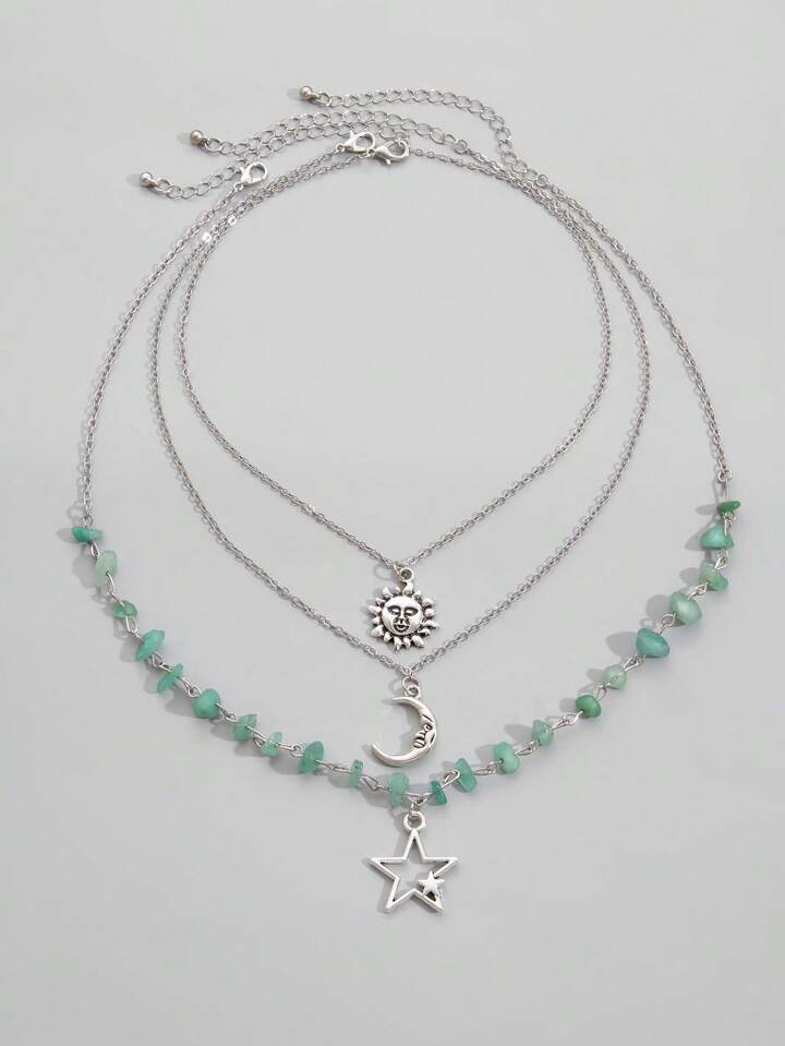 Fairycore 3pcs Set Simple Star, Moon & Sun Pendant Bead Chain Necklace