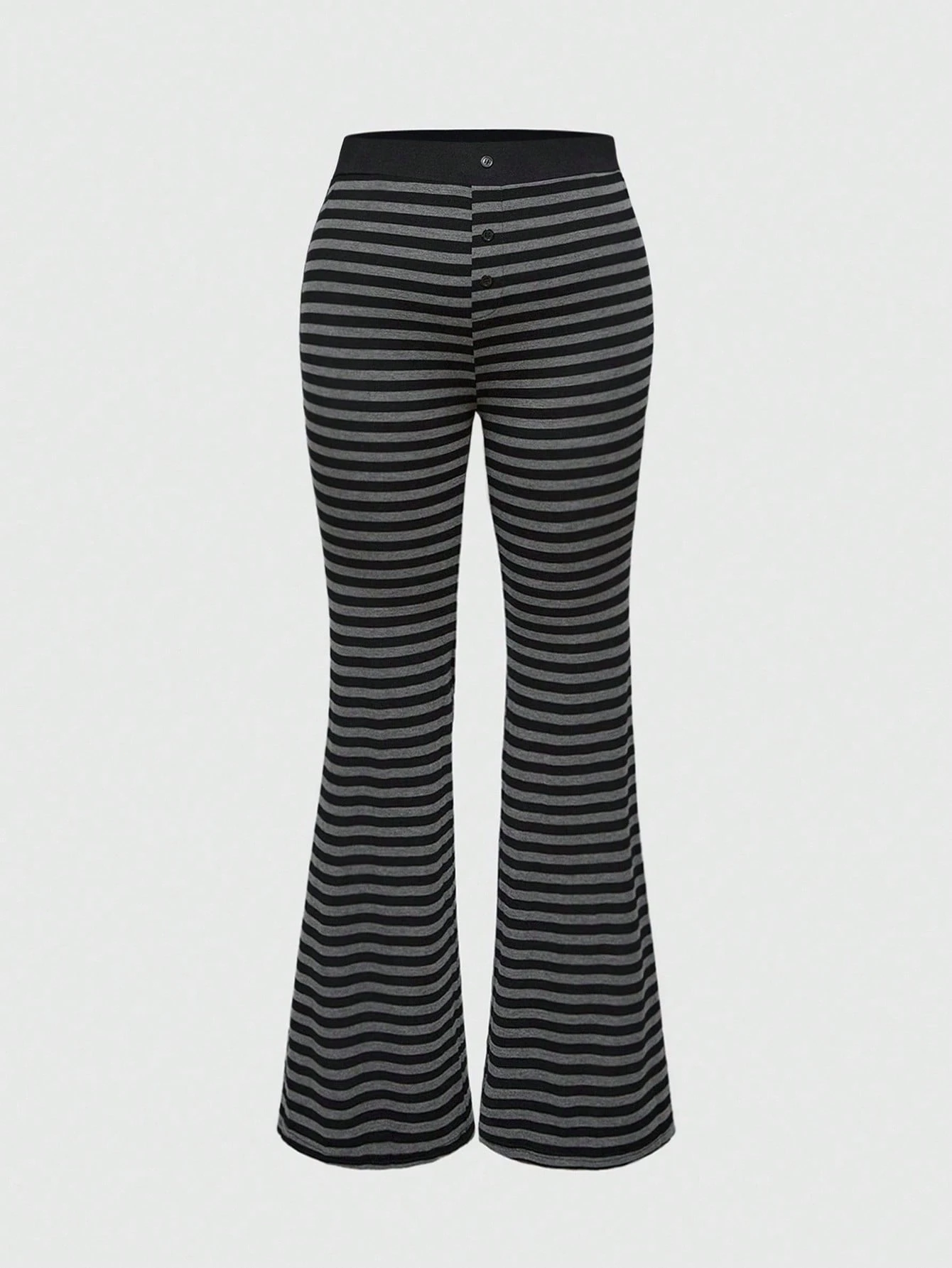 Fairycore American Style Black & Gray Striped 3-Button Triangle Trousers