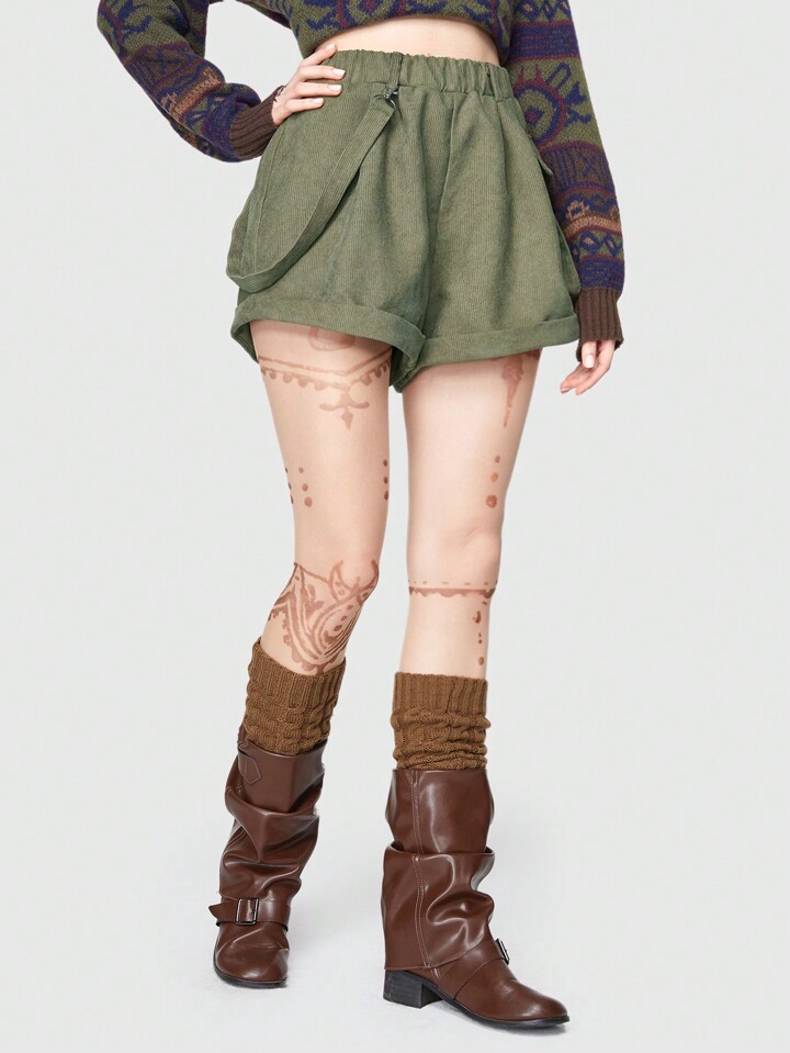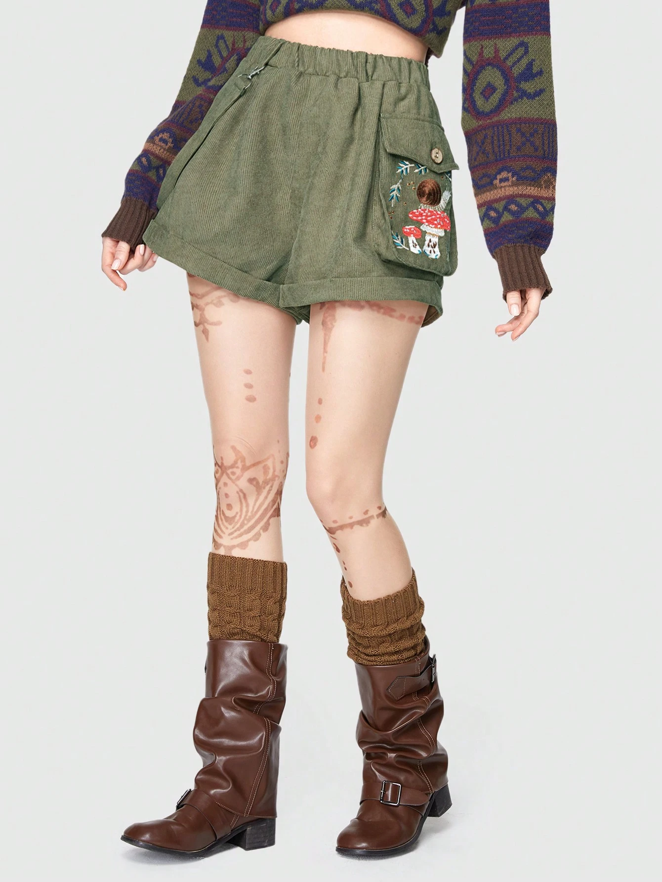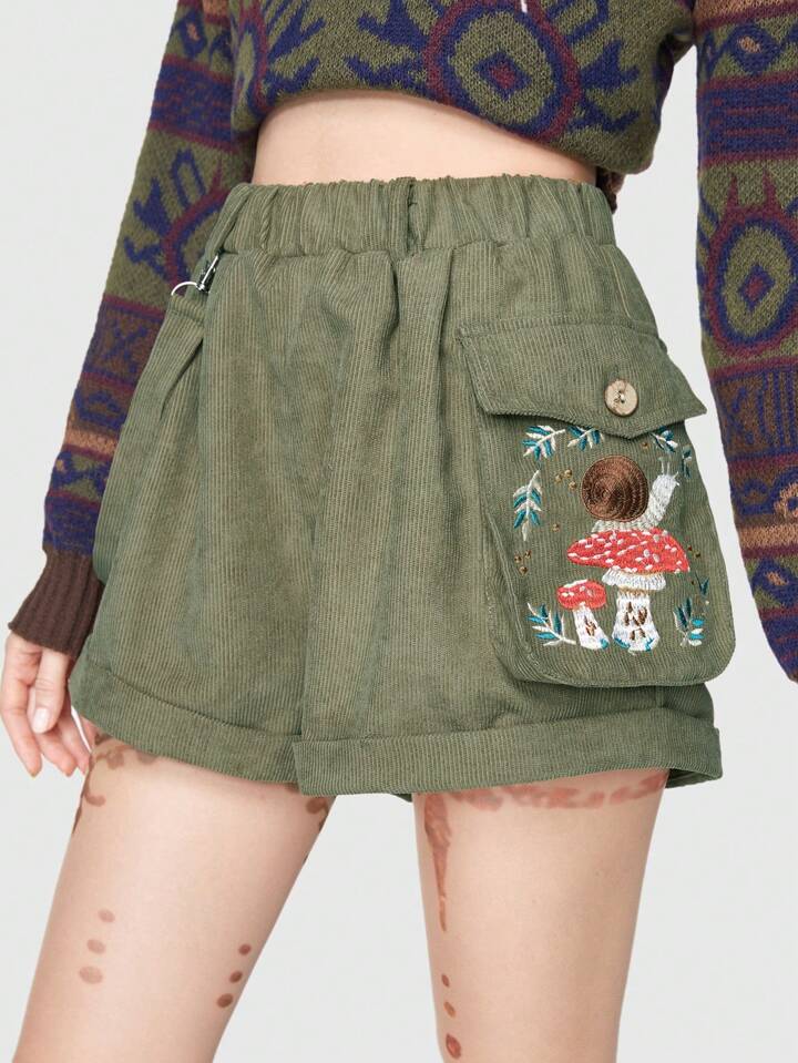 Fairycore Cartoon Embroidery Flap Pocket Shorts