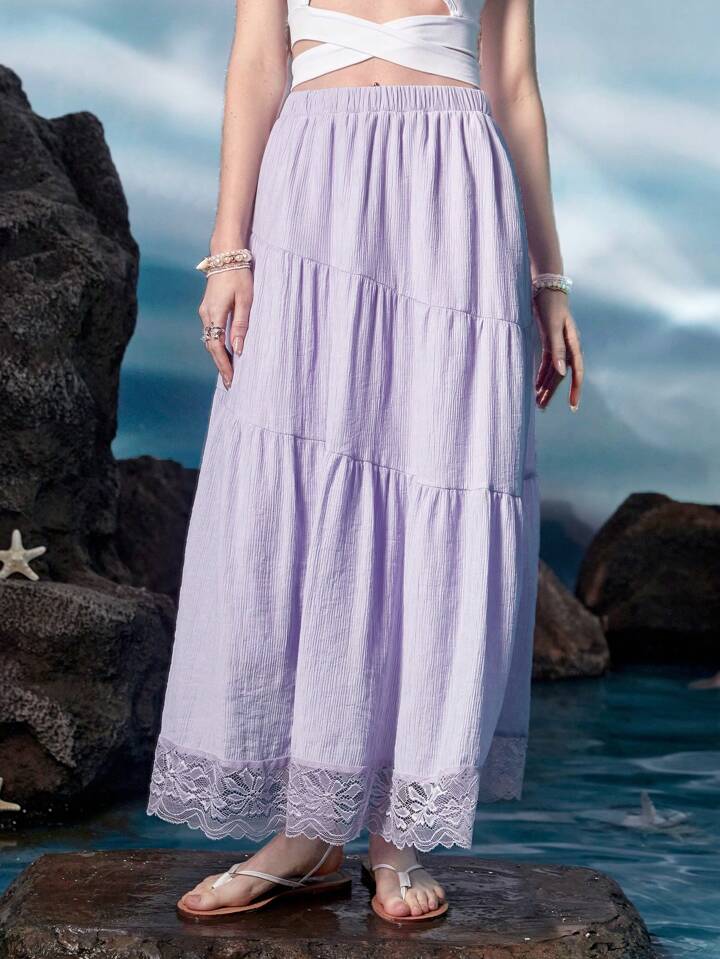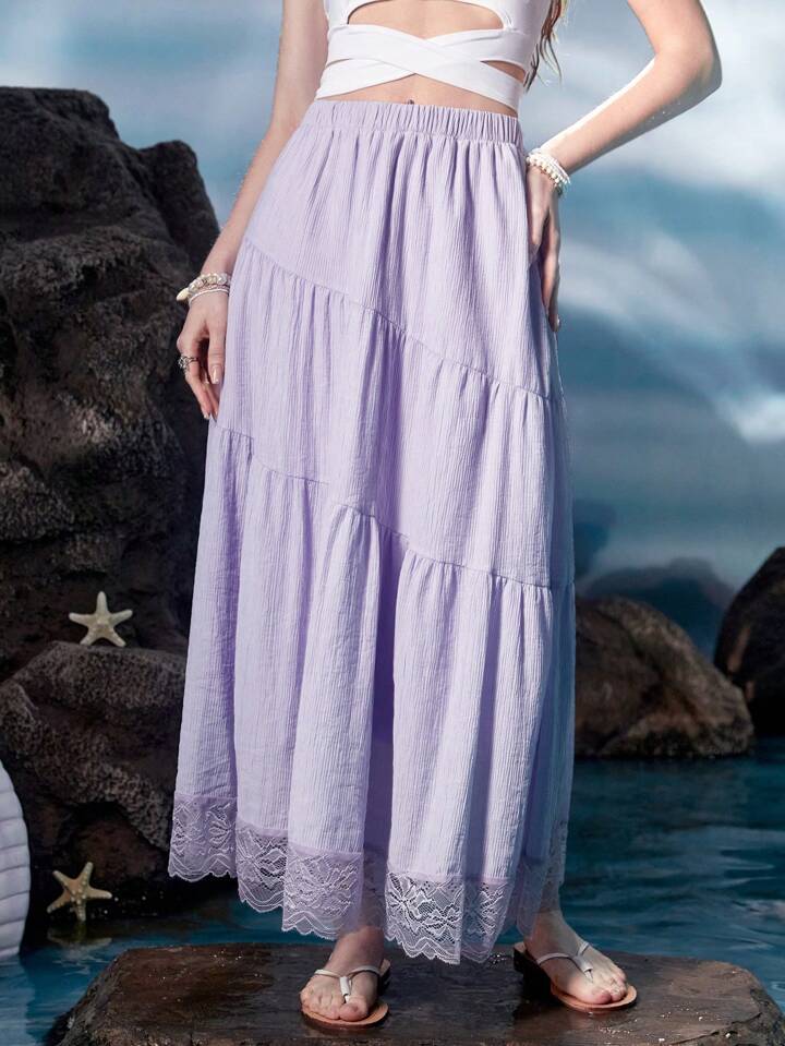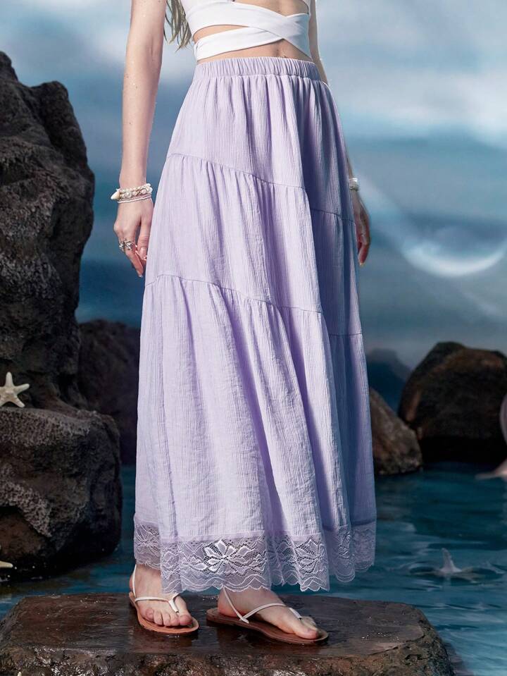 Fairycore Contrast Lace Ruffle Hem Skirt