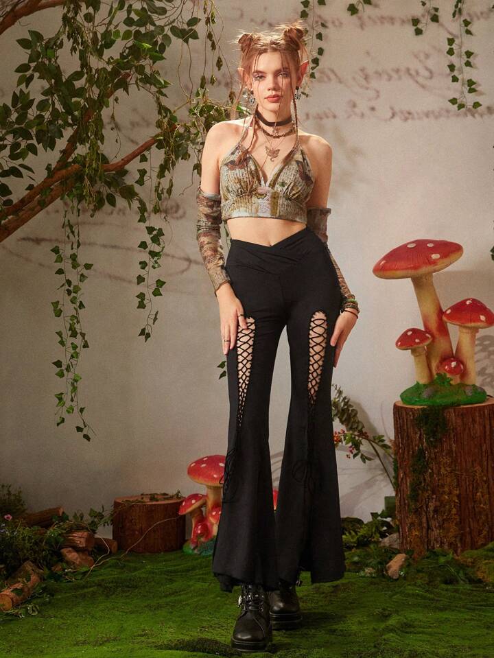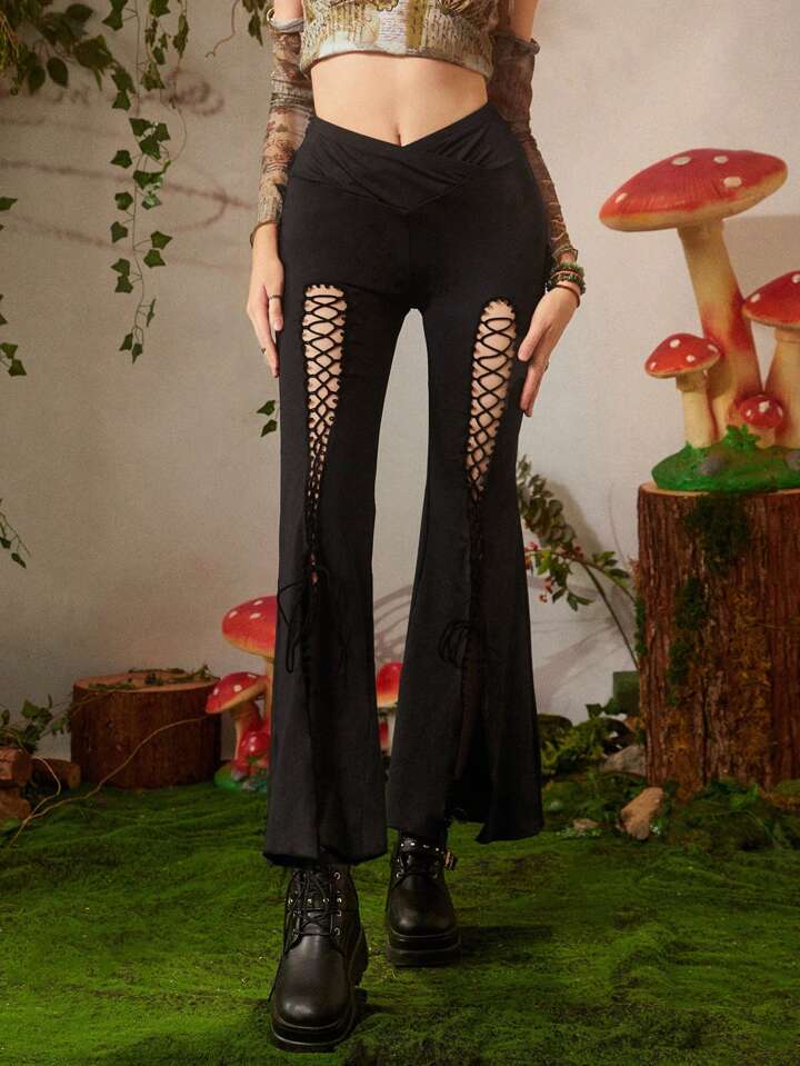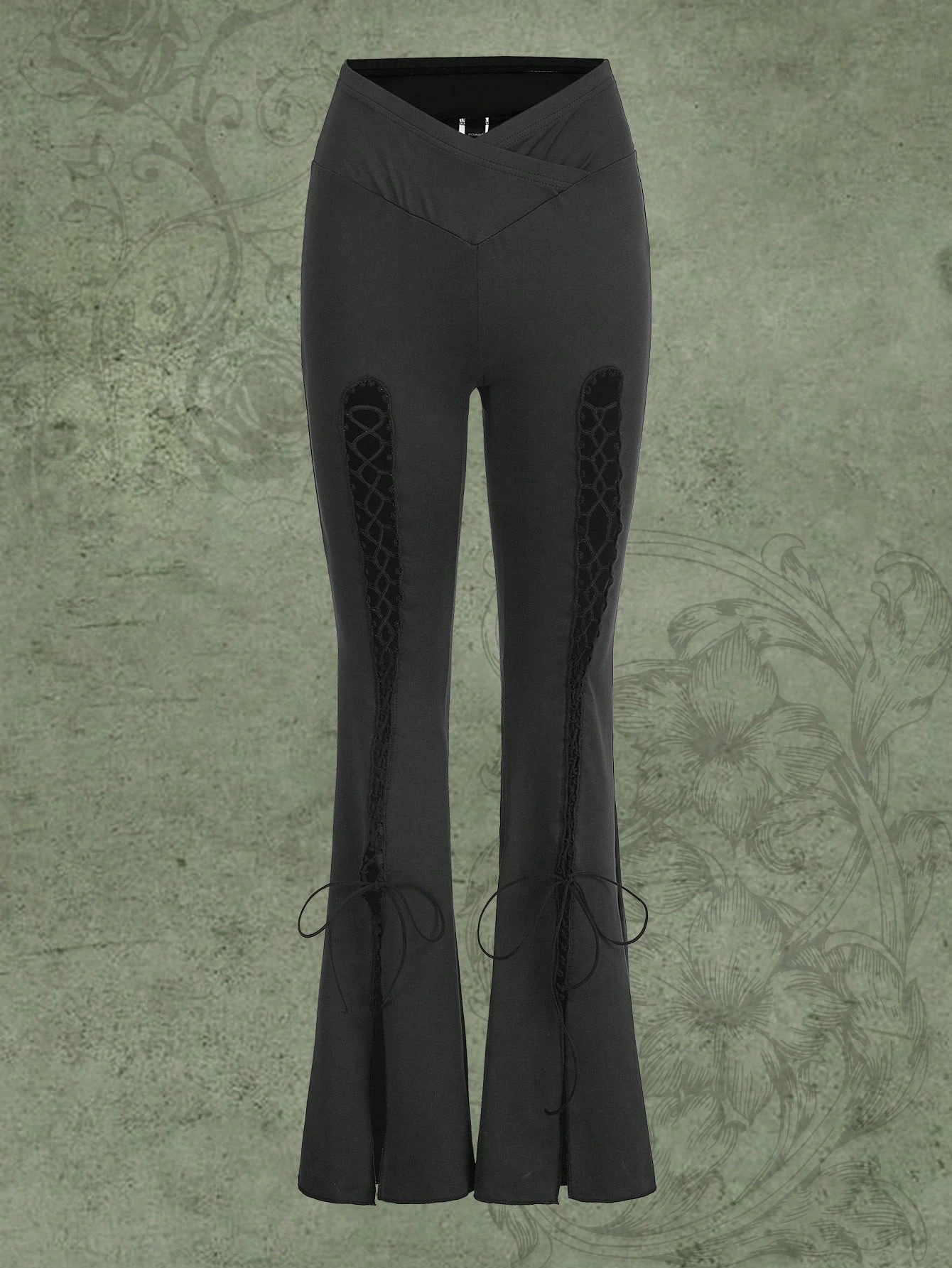 Fairycore Cut Out Lace Up Front Flare Leg Pants
