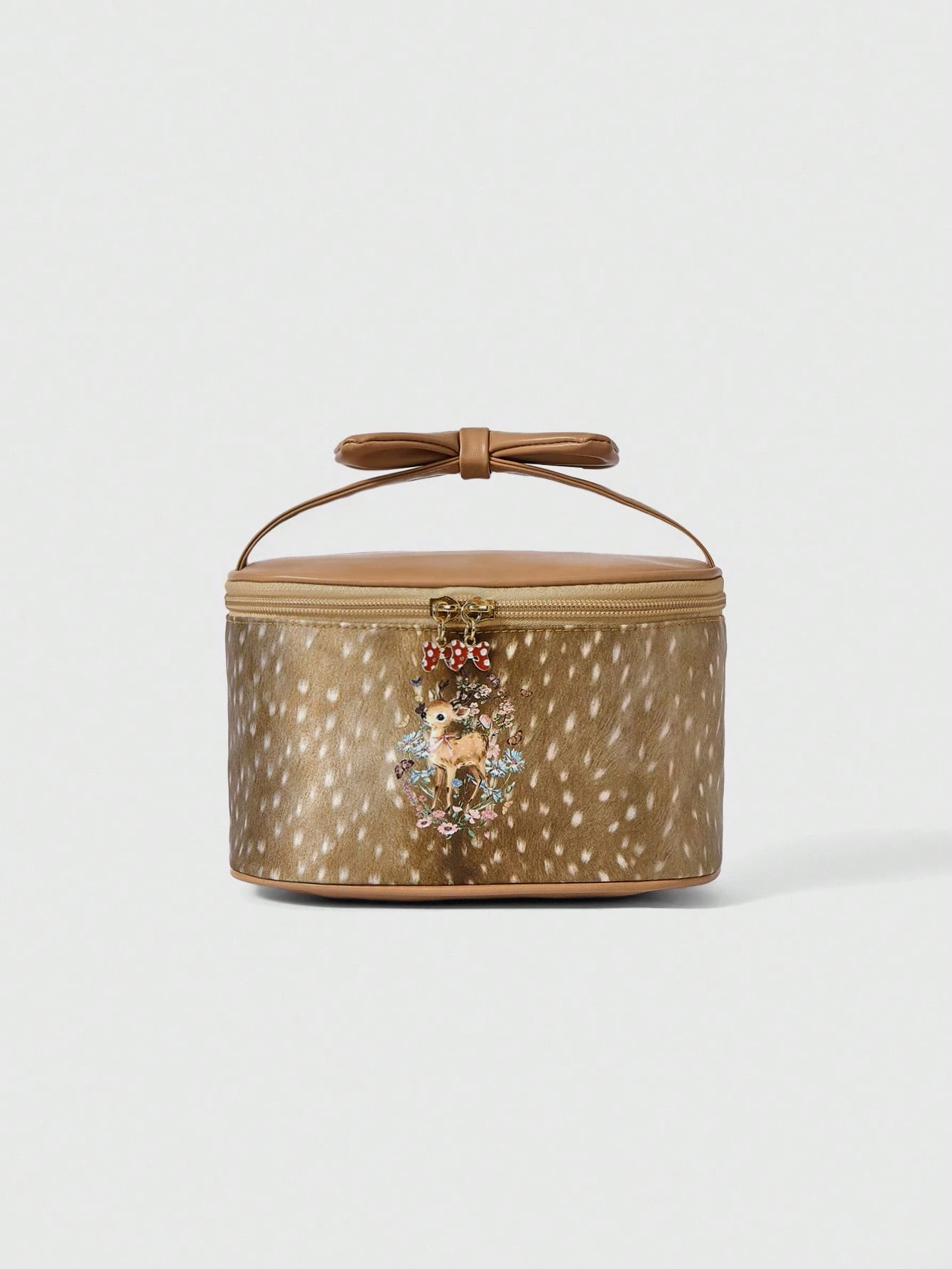 Fairycore Fashionable Brown Deer Pattern Floral Large-Capacity Portable Makeup Bag