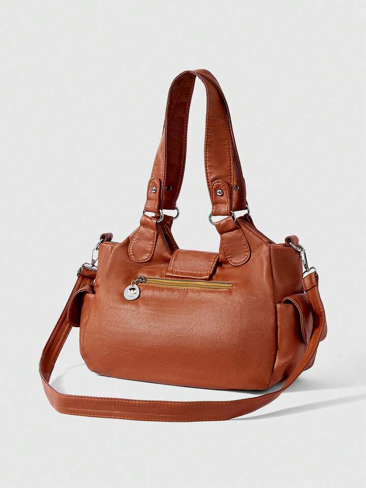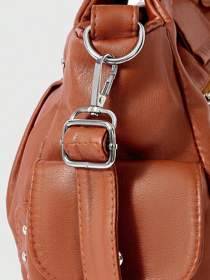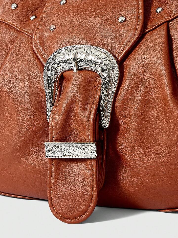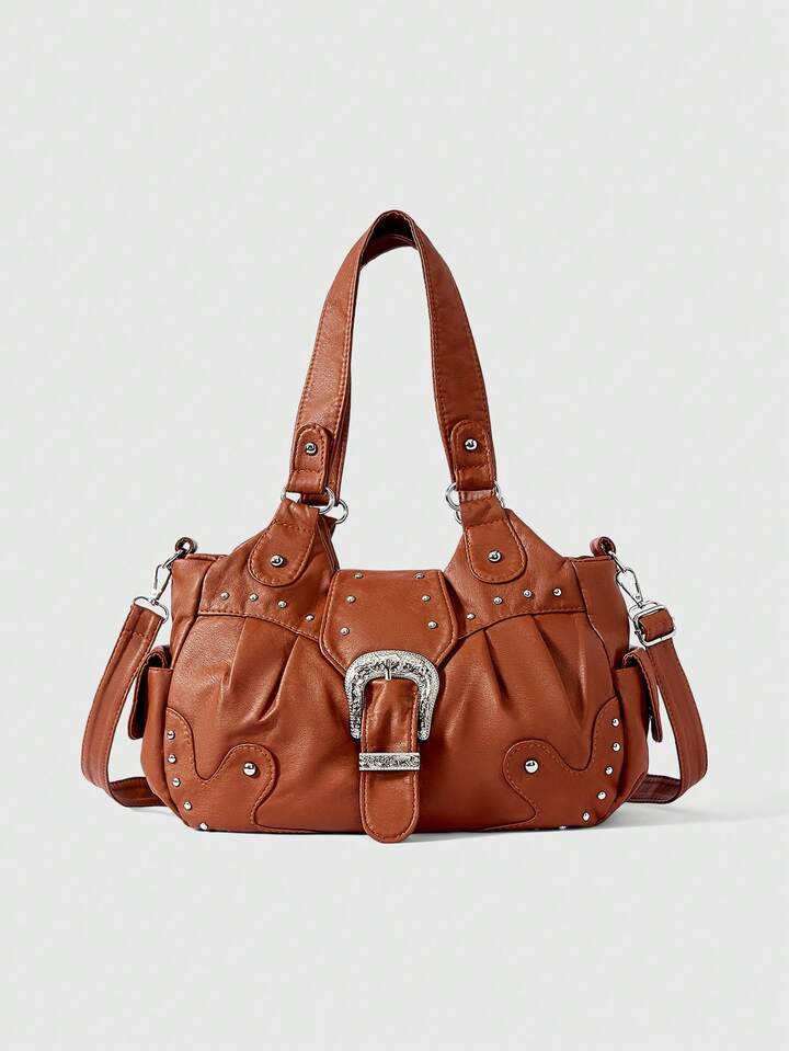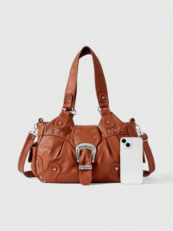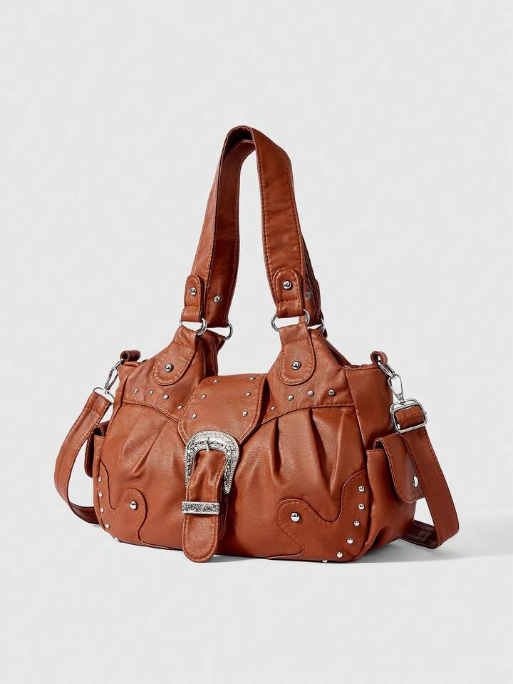 Fairycore Fashionable Rivet Decor Shoulder PU Leather Handbag, Stylish For Commute