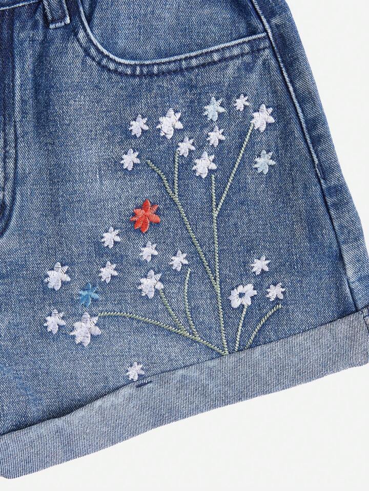 Fairycore Floral Embroidery Denim Shorts