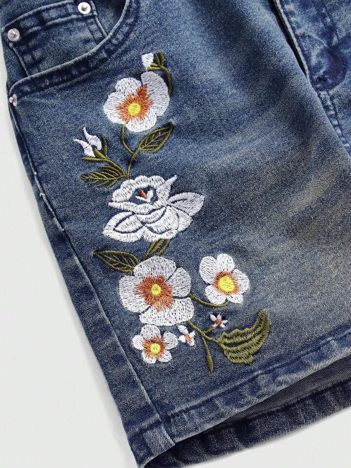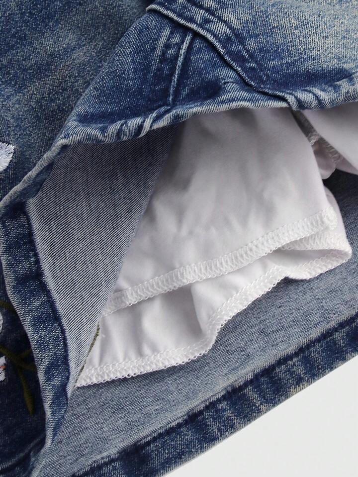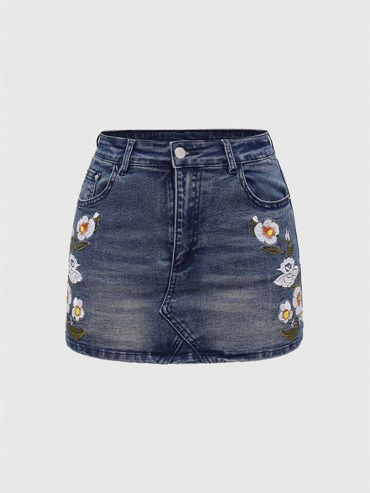 Fairycore Floral Embroidery Mini Ultra-Short Denim Skirt For Women
