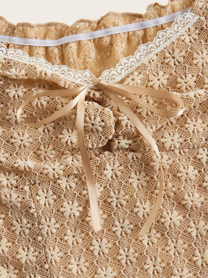 Fairycore Floral Print Drawstring Front Frill Trim Blouse