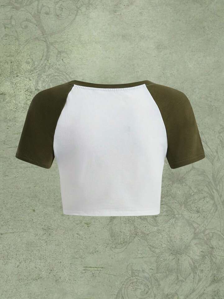 Fairycore Frog & Skull Graphic Colorblock Crop Tee