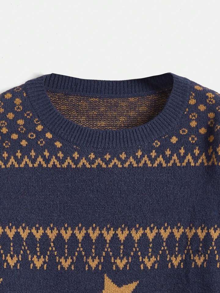 Fairycore Geo Pattern Drop Shoulder Sweater