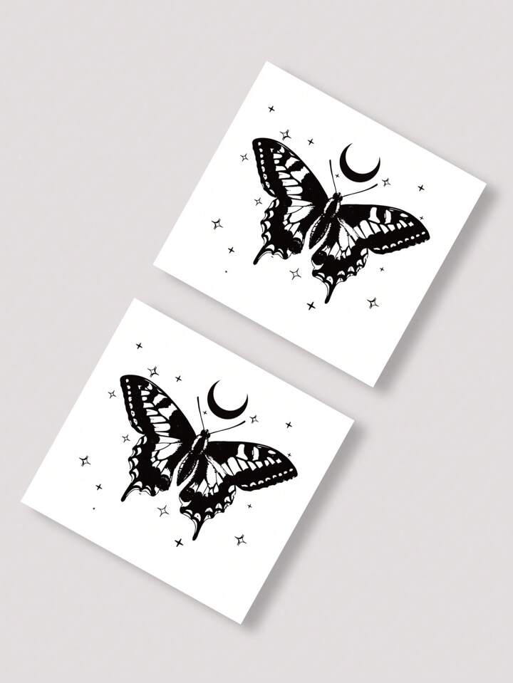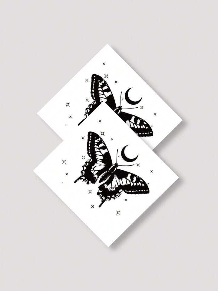 Fairycore Gothic-Style Black Butterfly Temporary Tattoo