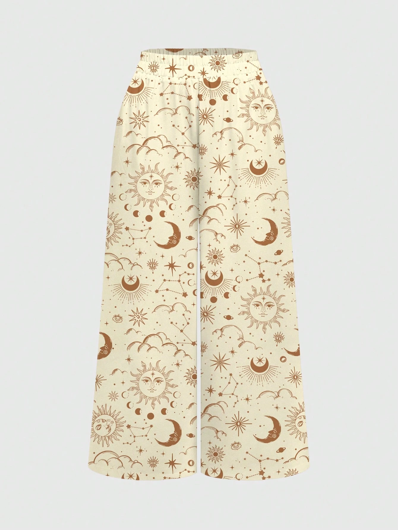 Fairycore Hippie Chic Dark Sun Moon Star Western Cowgirl Spring/Summer Vacation Beach Wide Leg Pants For Women